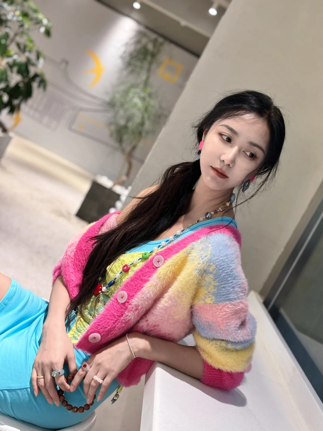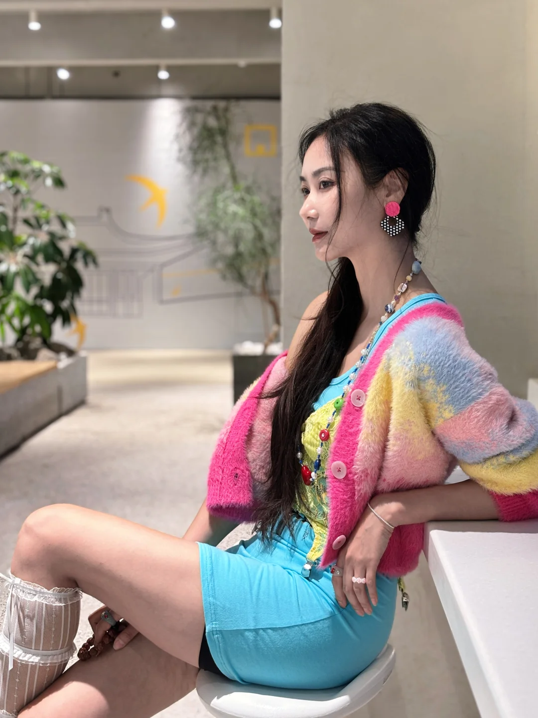春夏就该穿成彩虹色!粉黄渐变开衫+亮蓝吊带裙,元气感直接拉满💛