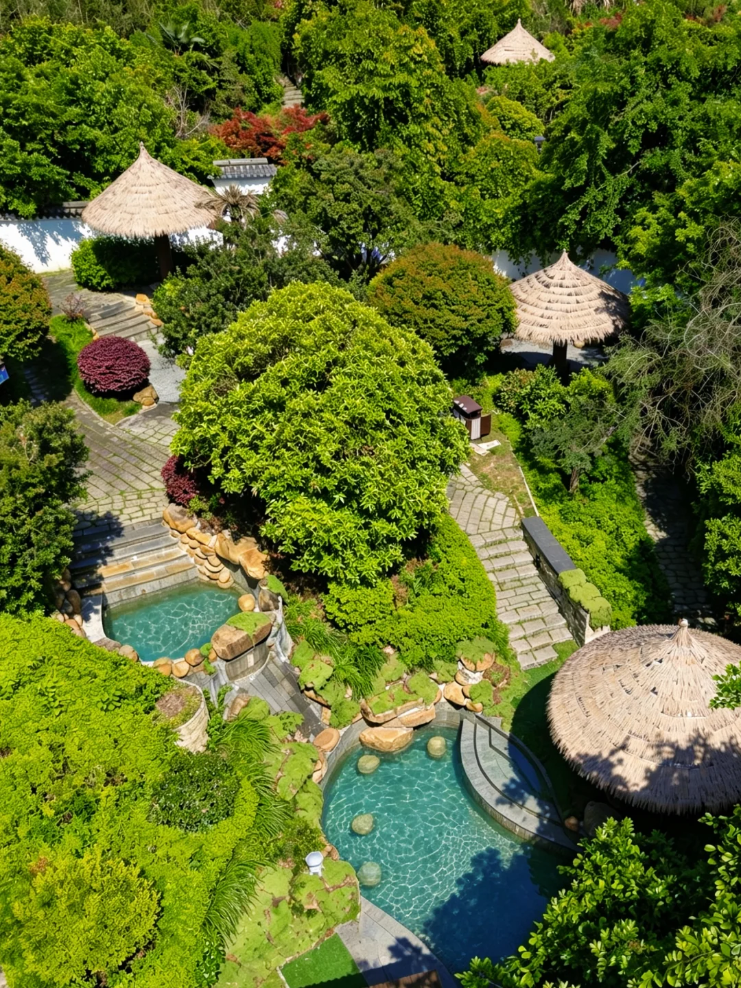 ▫️修河汤院:山林深处的徽派庭院,一院一私汤,泡着偏硅酸温泉看山景数星星,私密感拉满