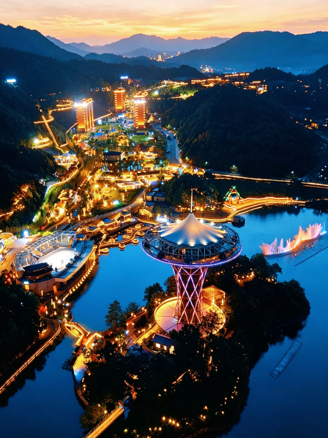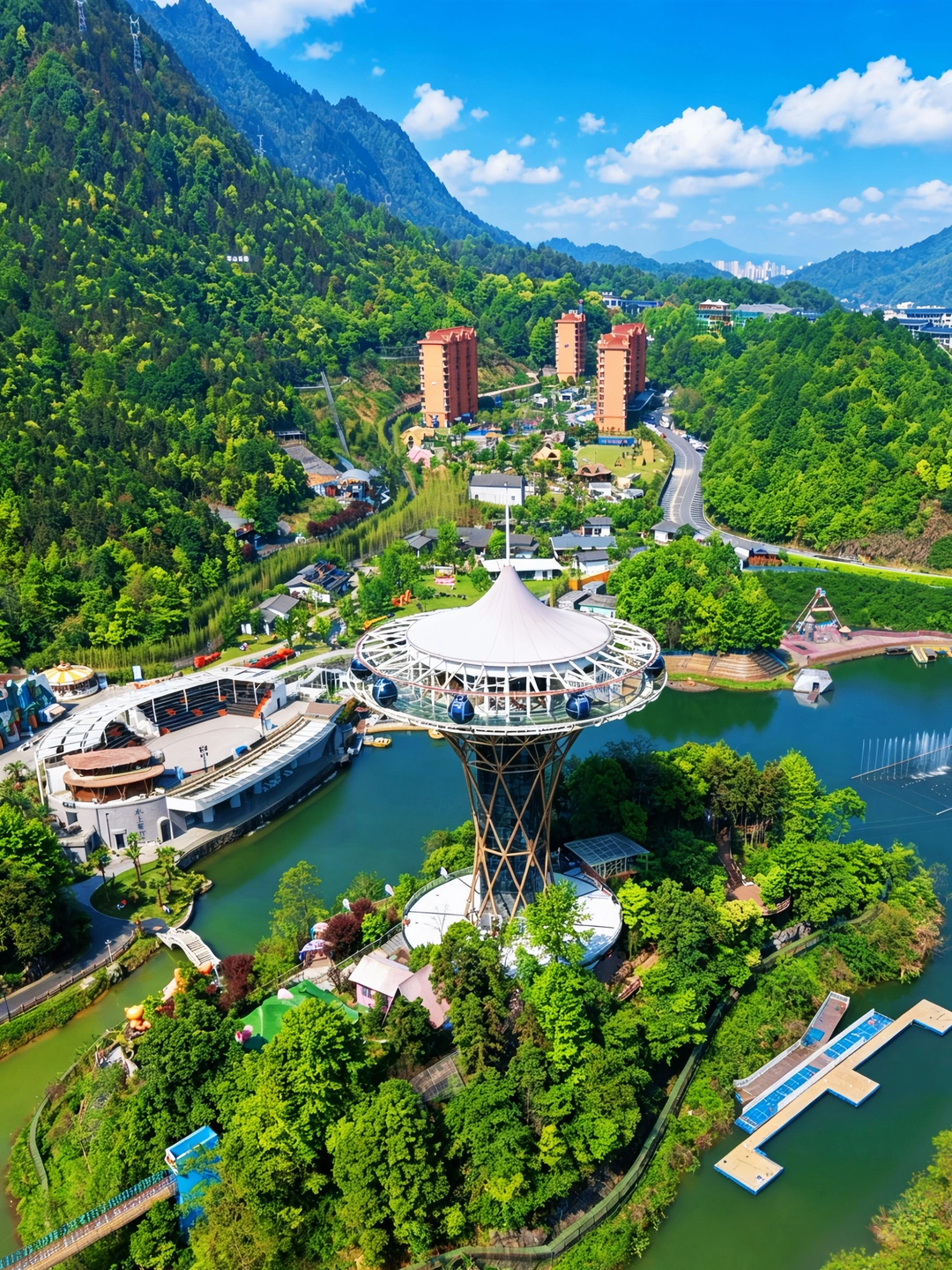 ▫️小熊猫冒险岛俯瞰山谷全景,顶层旋转西餐厅吃氛围感午餐