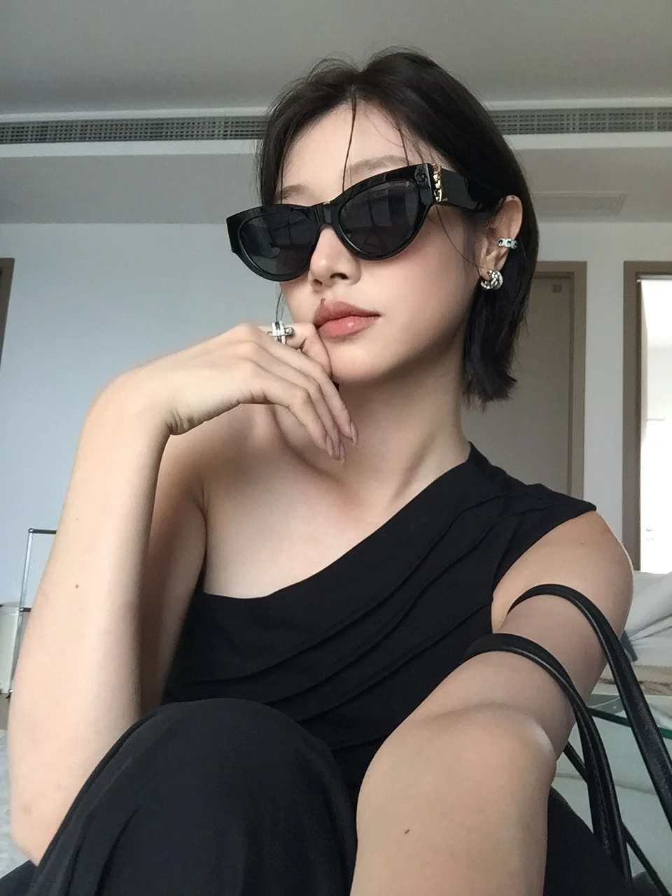 拍照姿势 穿搭灵感 颜色的尽头是黑色 质感穿搭法则 设计感穿搭 斜肩上衣 ootd 套装穿搭 高个子穿搭 夏日穿搭
