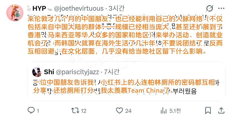 韩国人:托中国朋友的福,我在柏林免费上了厕所。而评论区的韩国人这样回答“我在韩国