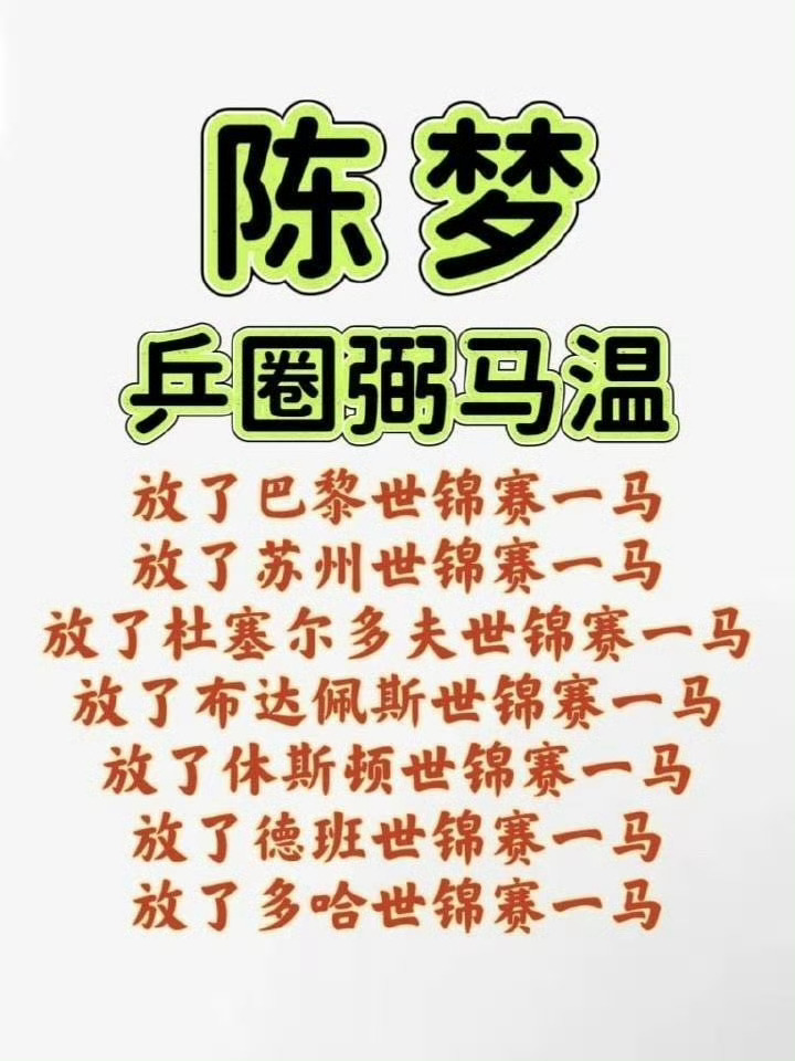 不要胡闹了好吗只知道陈梦一直在放马到世锦赛0冠亚洲杯0冠亚锦赛0冠亚运会0冠到成为团体赛一单输外协第一神人