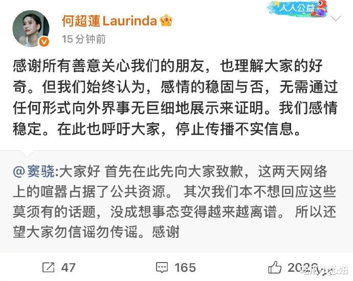 说到底,窦骁和何超莲这次的做法,真的很拉好感。他们没有选择沉默,让谣言继续飞;也没有哭哭啼啼卖惨,而是用最直接、最体面的方式,维护了自己的家庭和名誉。