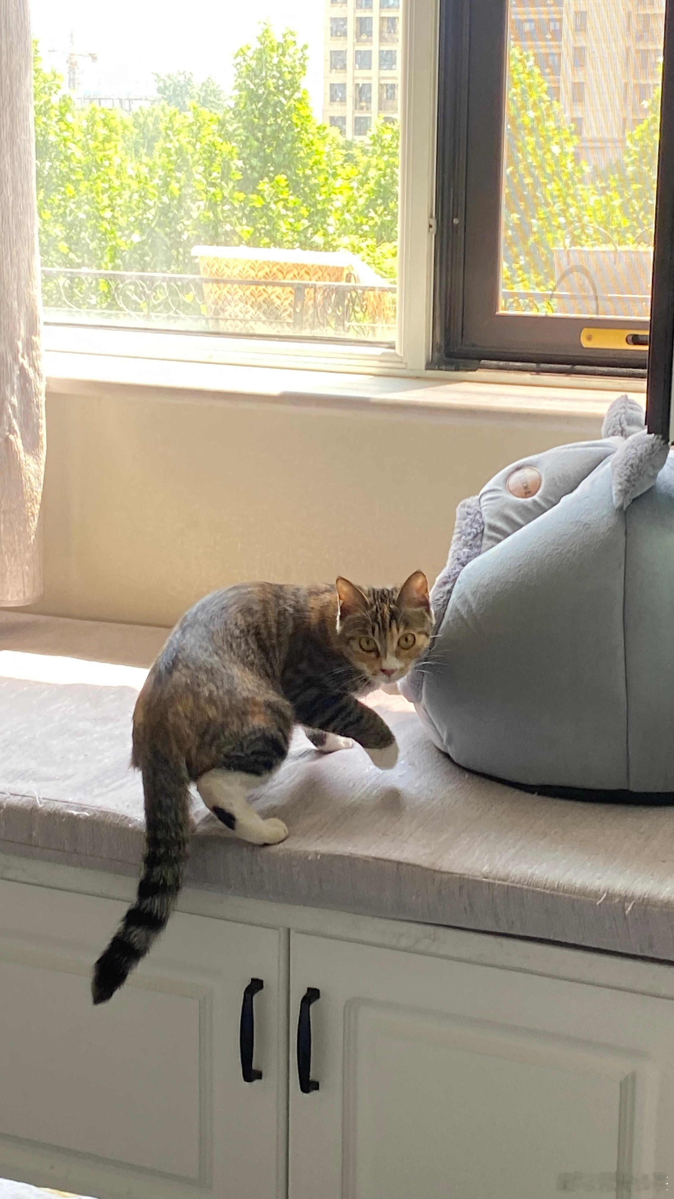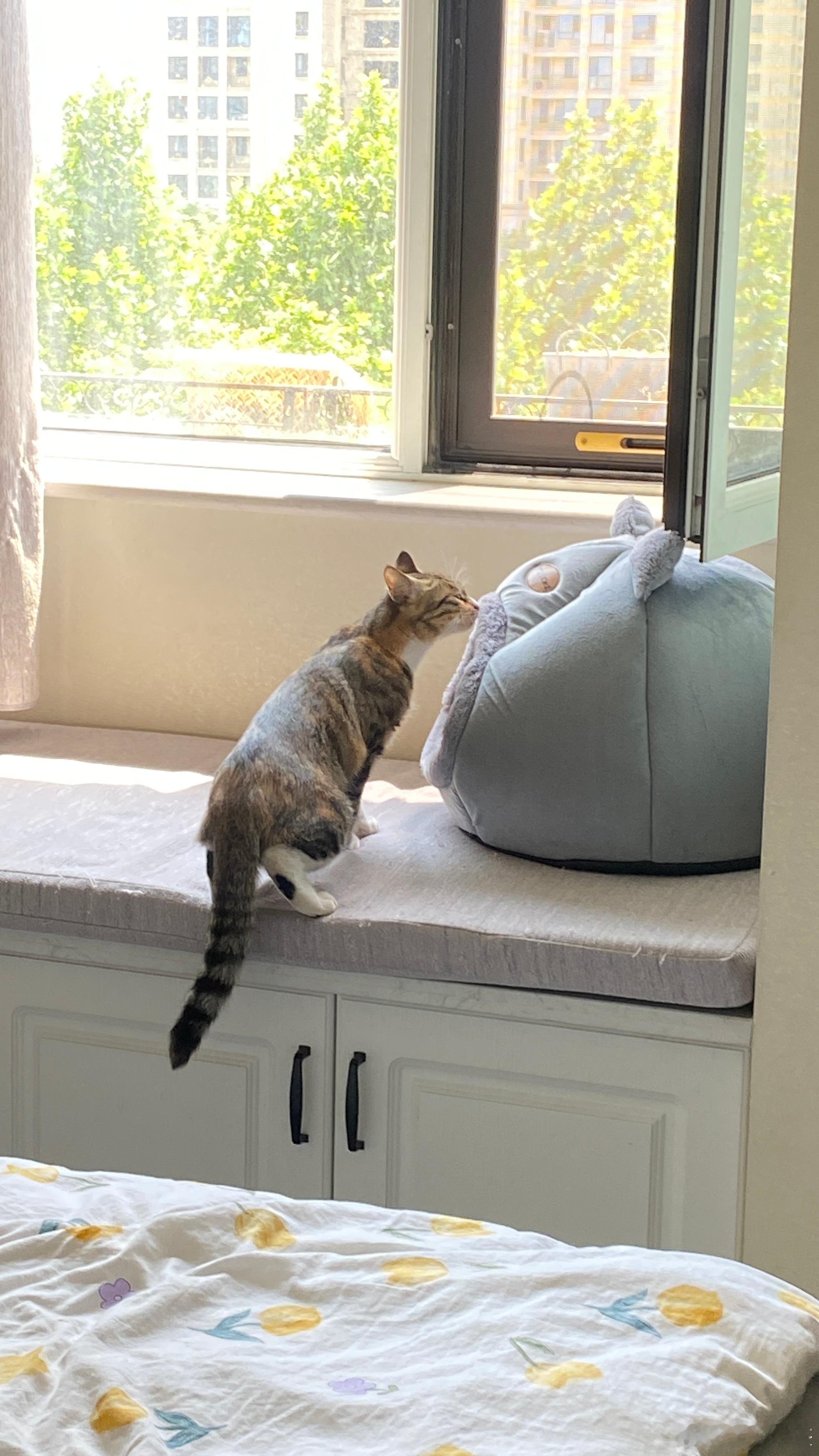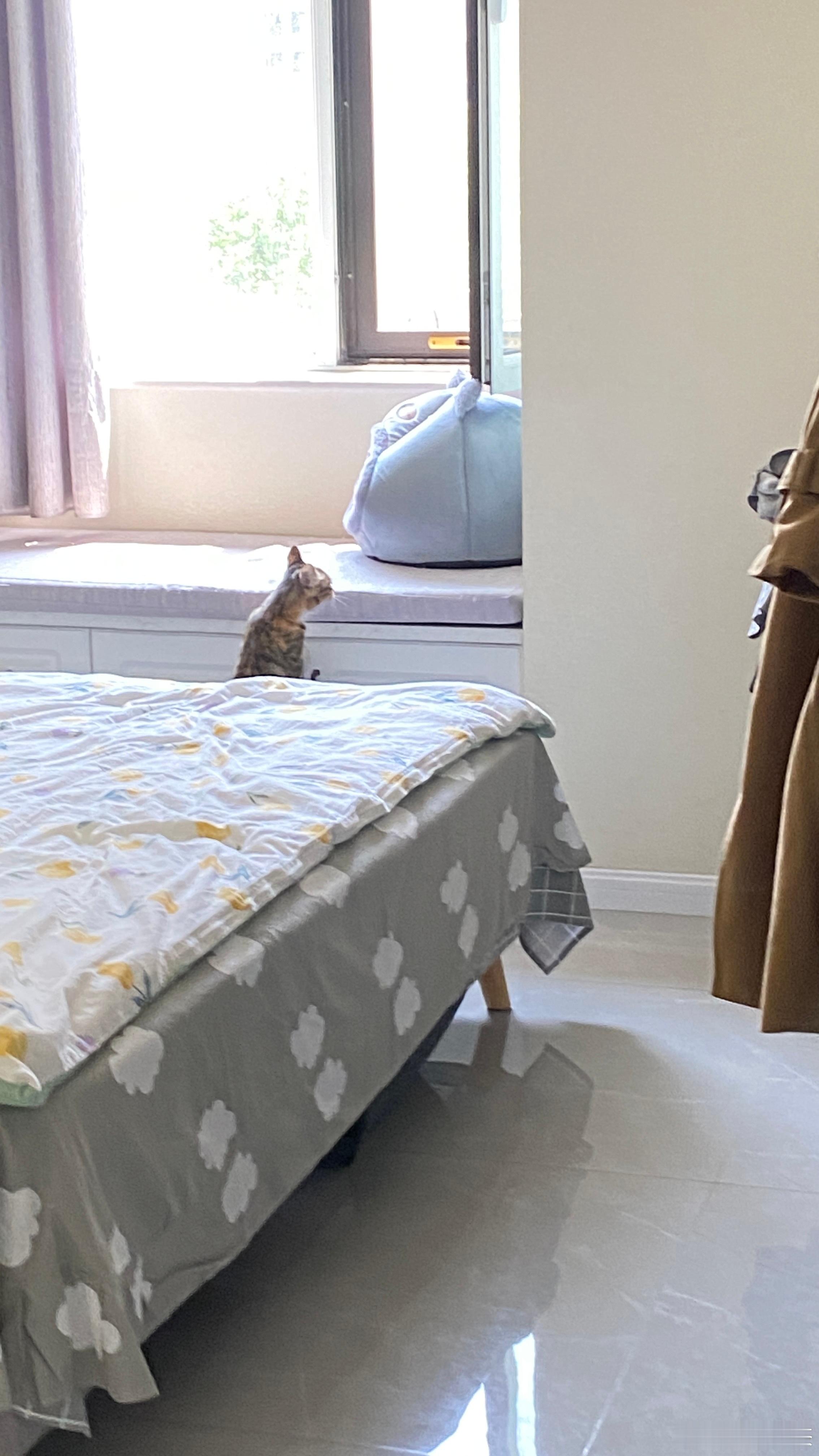 这只小狸花好不客气,一进来就跑到卧室去了,闻到了原住民的气味,不停地嗅来嗅去。