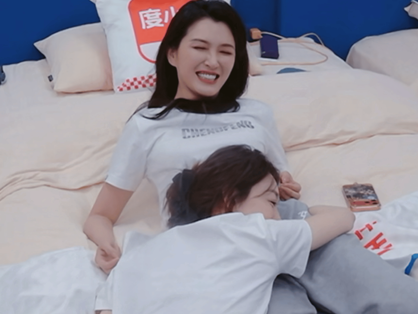 李小冉躺在徐洁儿腿上李小冉躺在徐洁儿腿上撒娇 我看到了什么?你们两个人麦的这么大吗?这是妈孩play!