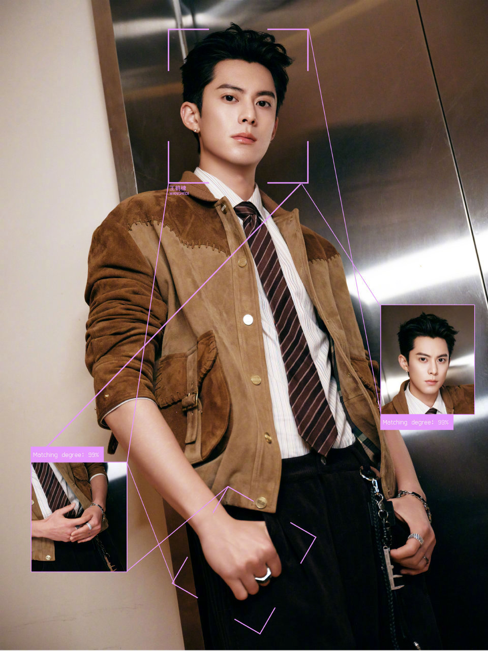 王鹤棣 今日新剧《黑夜告白》剧宣造型,身着GARCON BY GARCON手工编