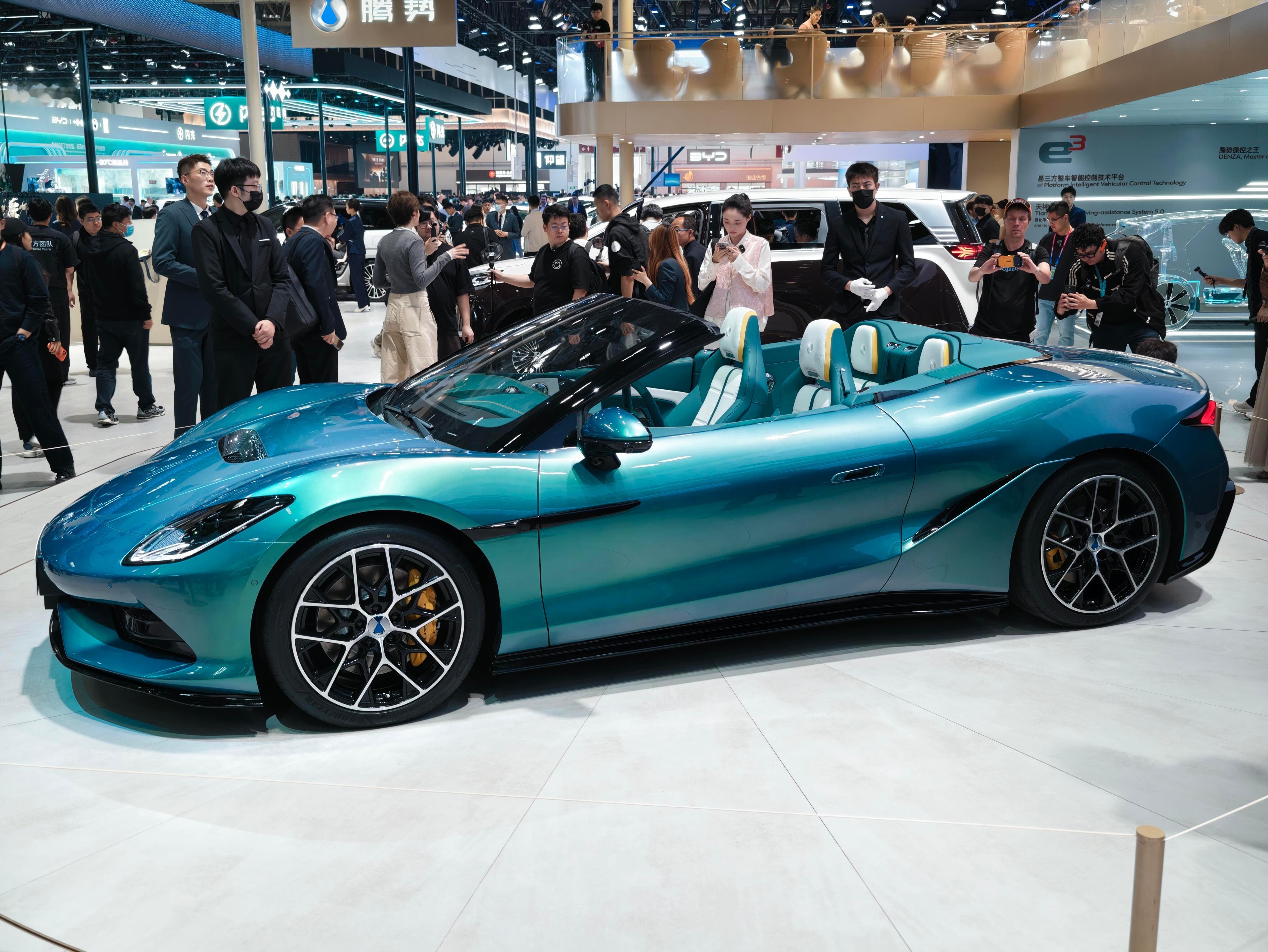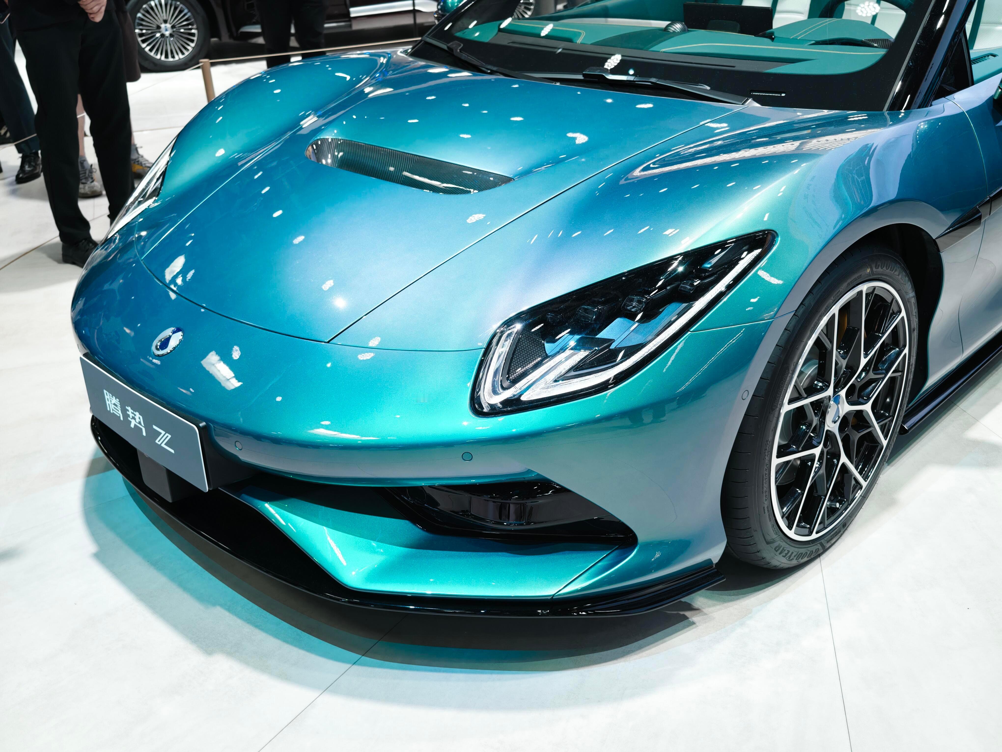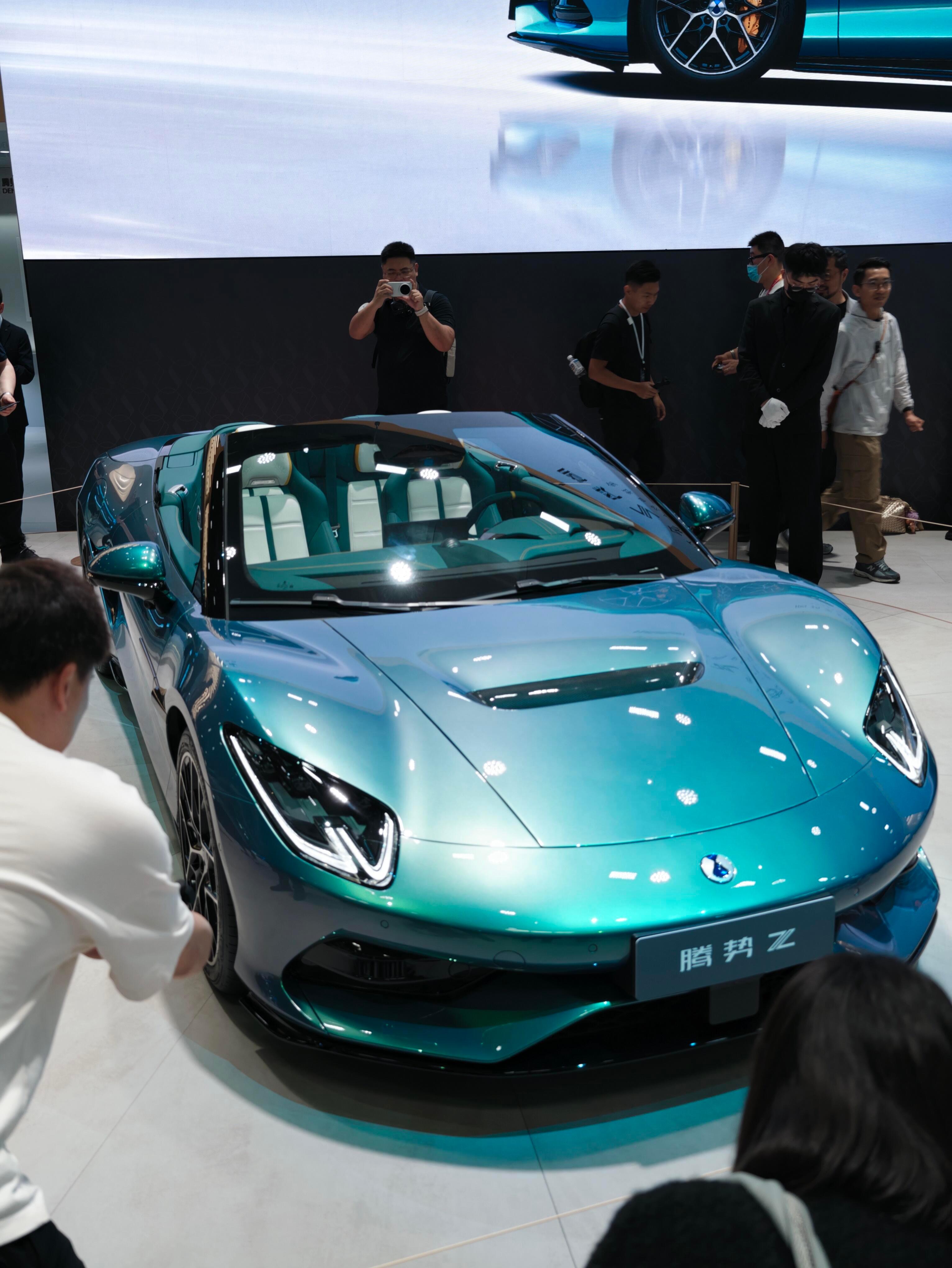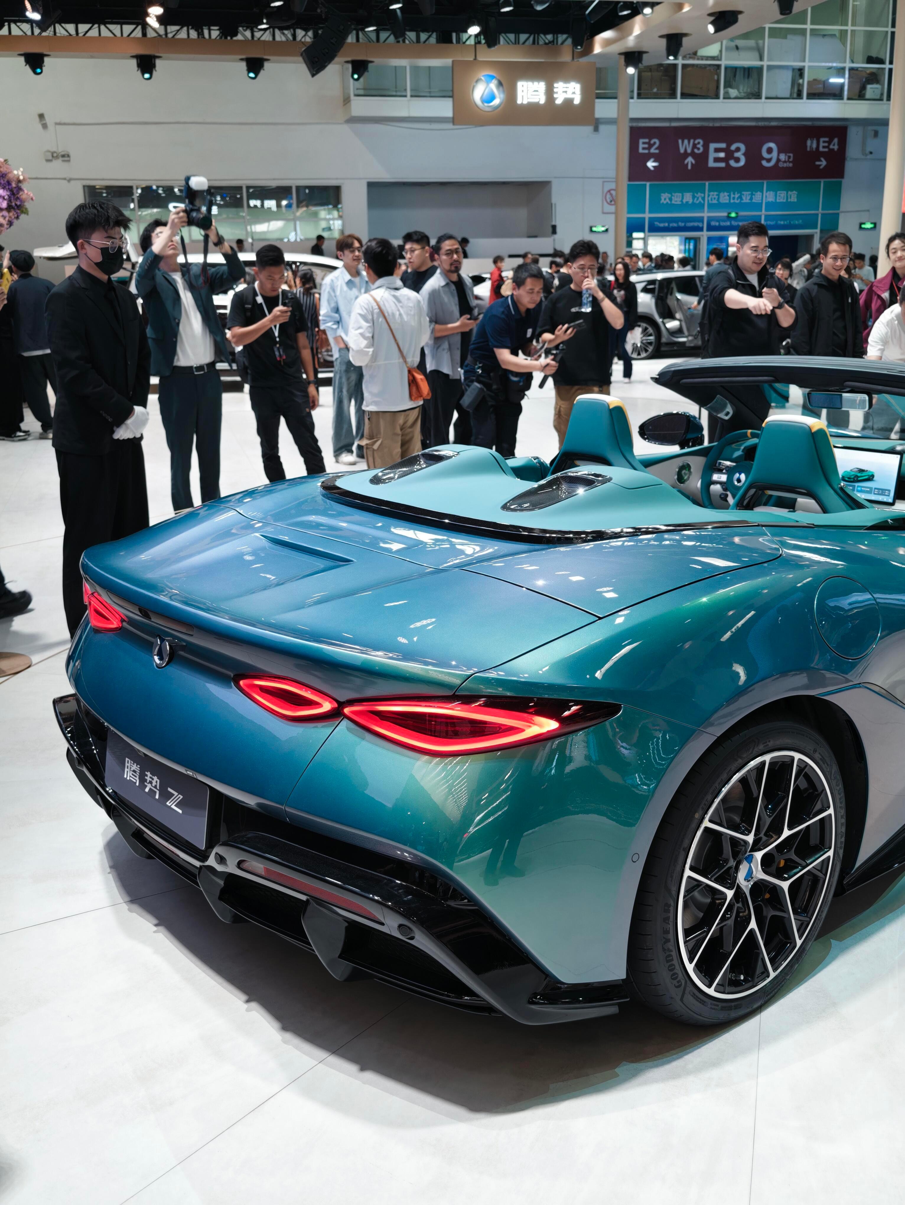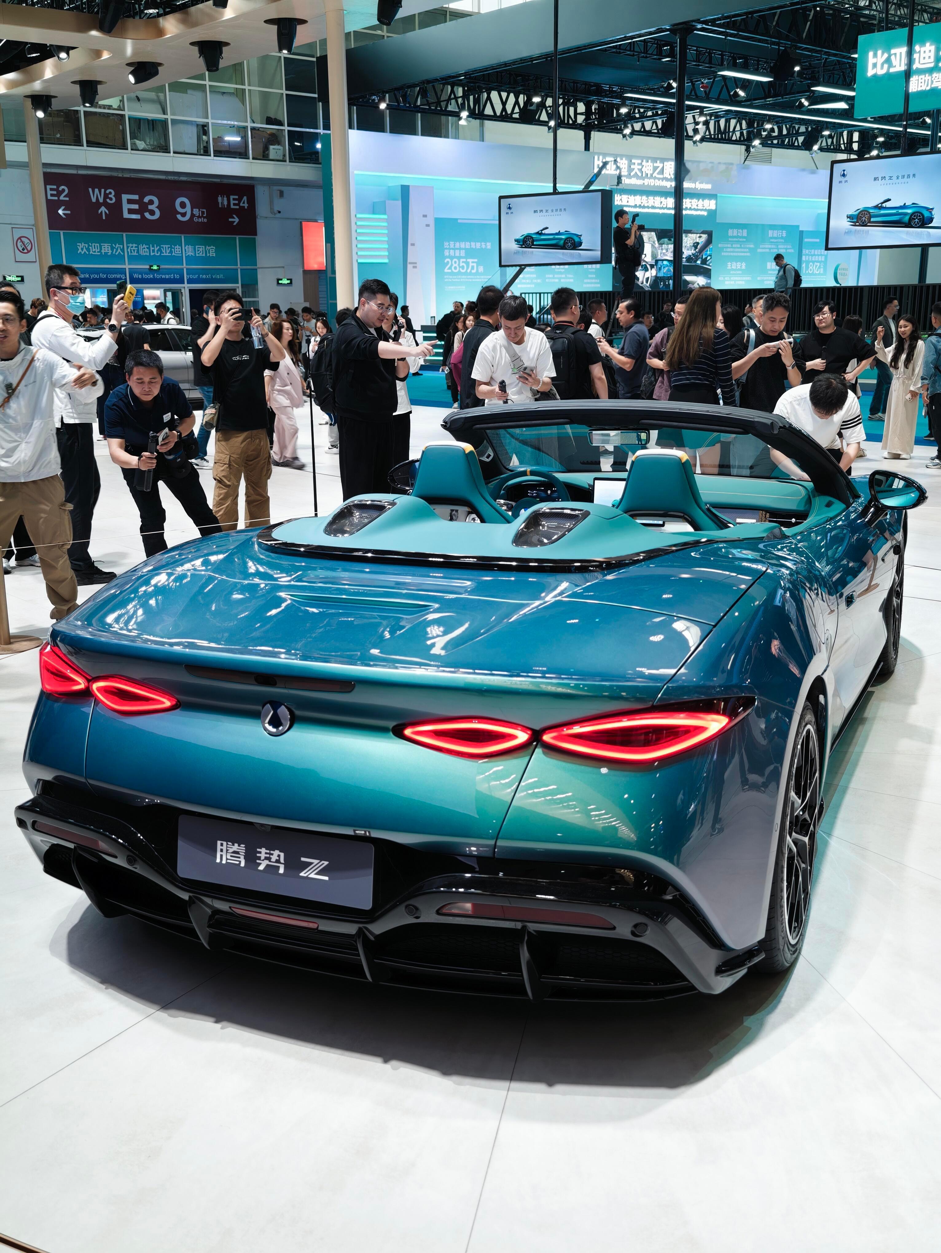 腾势Z纯电敞篷跑车,实车很漂亮,看起来挺薄的,完全没有电动车的厚重感。型面和车漆