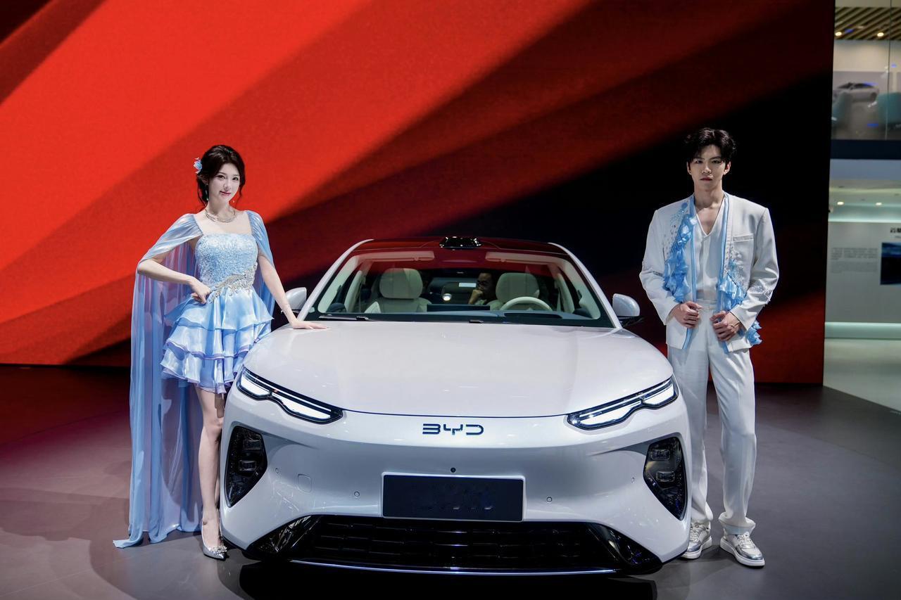 比亚迪全系展台的模特服饰,全部来自专属定制,风格大气,简约高级,不同子品牌穿搭风格清晰分明,品牌气质与造车美学融入其中,产品和体验双线加成。