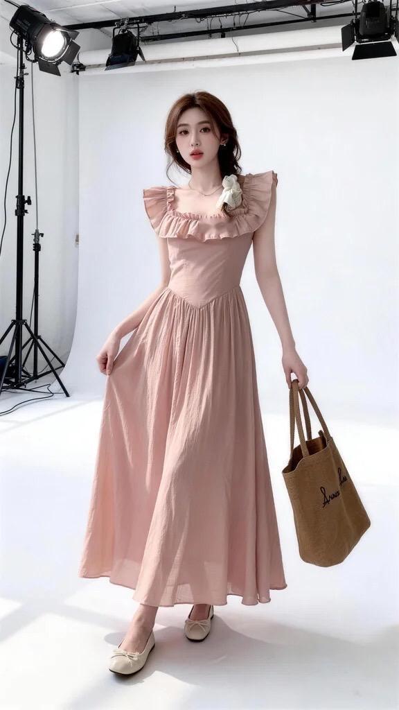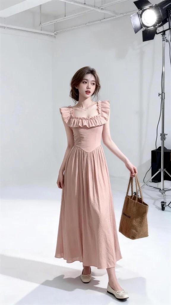 度假小裙巨显瘦好吗!粉色长裙温柔风 无法拒绝温柔感小裙子 少女心粉色连衣裙 气质