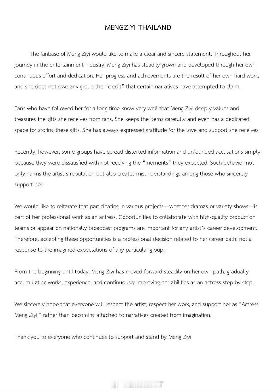 孟子义泰国粉丝后援会声明 ,只有爱她的人才知道她有多好