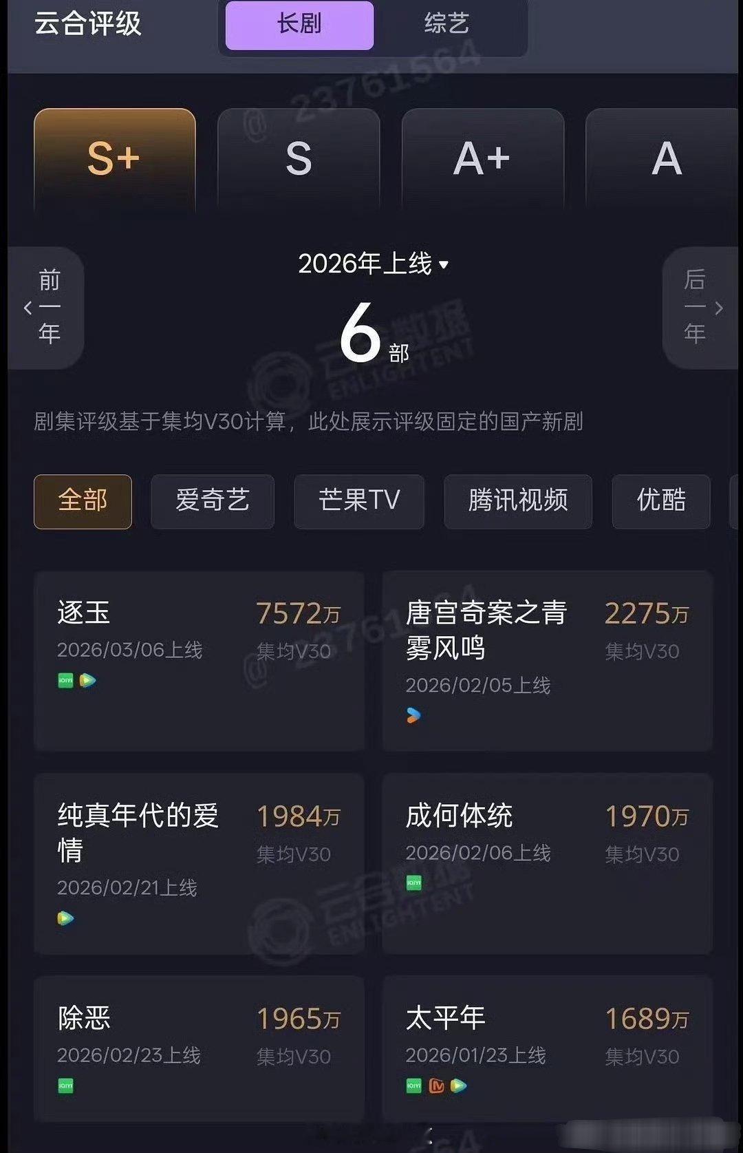 《逐玉》云合v30固定7572w,你们怎么说?张凌赫爆了吗?不明白为什么要拉那么多人比😂又是陈晓又是宋威龙……因为豆瓣待遇已经变差了