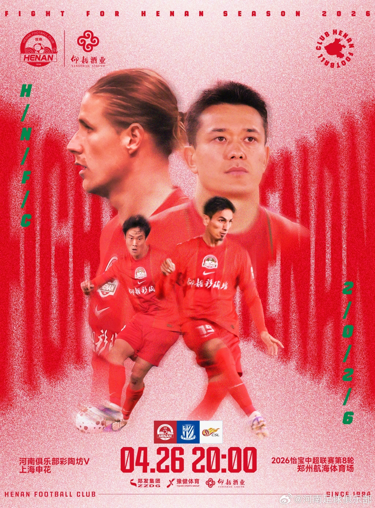 北京时间20点,中超第8轮,河南队vs上海申花,赛前双方首发公布!