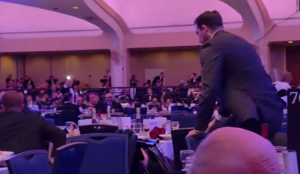 瞬间,整个宴会厅从觥筹交错的社交场,直接变成了混乱的避险现场。两千多名宾客瞬间炸开了锅,尖叫声、桌椅碰撞声混在一起,所有人的第一反应都是往桌子底下钻。平时西装革履、光鲜亮丽的政客和记者,此刻全然顾不上体面,手忙脚乱地蜷缩在桌下,生怕流弹不长眼。