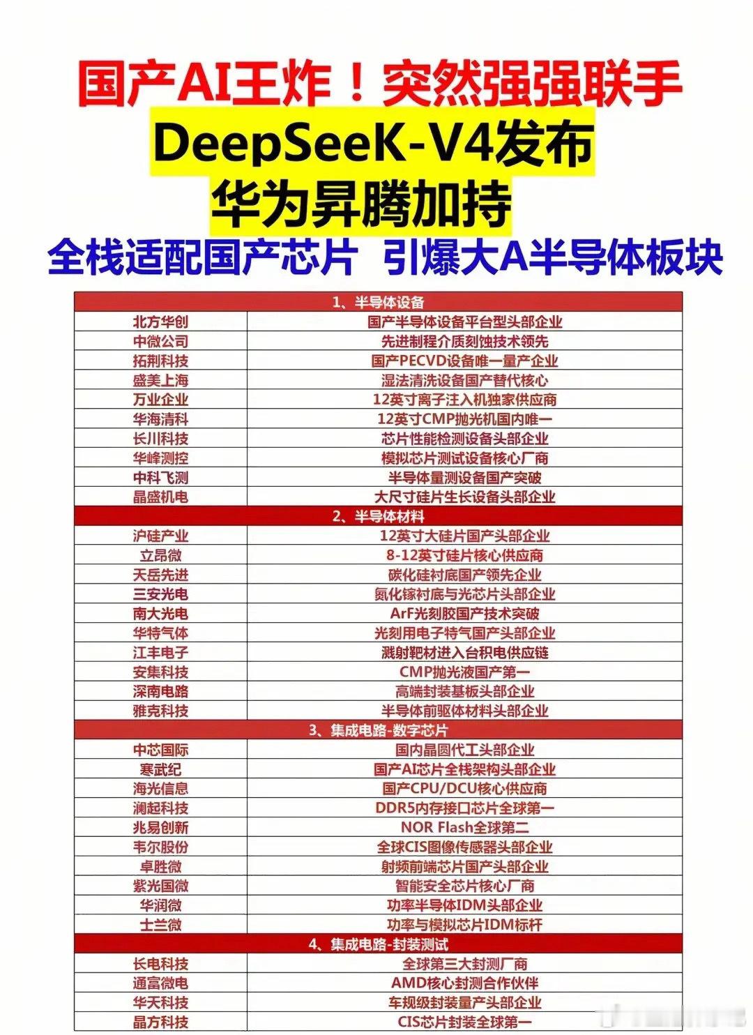 王炸组合!DeepSeek-V4开源+昇腾加持,国产AI产业链要爆了。