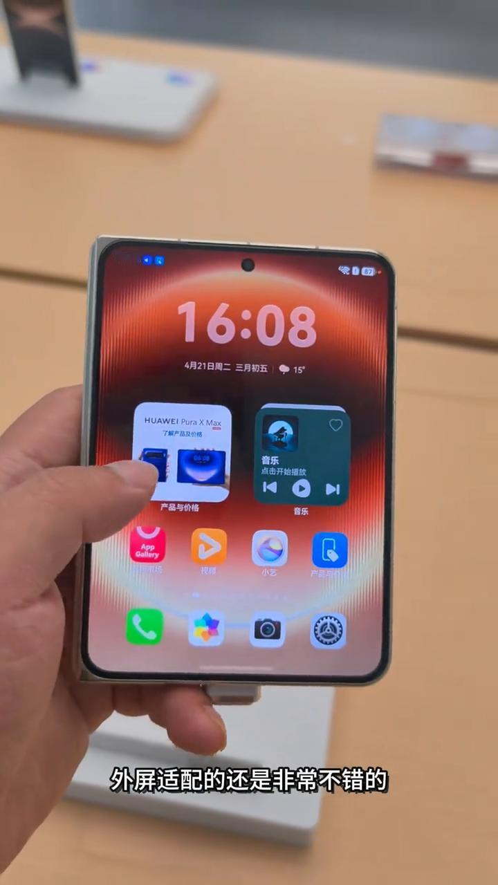 这里特别要夸一下它的外屏,相比较普通的小尺寸折叠屏手机,外屏要更大,实用性更强,外屏当主力机完全无压力了,无论什么功能在外屏都可以实现,放在口袋里也方便,这一点确实做的很好。看了一下外屏适配的还是非常不错的,毕竟华为做折叠屏手机这么多年了,也是有经验了。