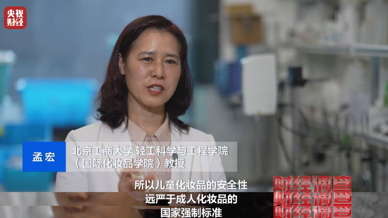 北京工商大学轻工科学与工程学院的孟宏教授从事化妆品相关研究多年,她告诉记者,为了保障儿童健康,国家为儿童化妆品制定的检测标准和管理规定,从原料选择到检测项目,相较于普通成人化妆品,有更高的门槛、禁用限用的原料更多,严禁添加刺激性致敏性的成分,微生物重金属限值也更严苛,生产环境过程控制、检验检测要求也更规范。
