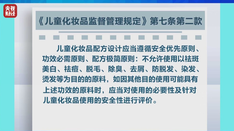 据央视新闻消息,近期,有家长向《财经调查》栏目反映,孩子在接触使用了市场上一些所谓“儿童专用”的化妆品后,产生皮肤红肿、过敏等一系列不良反应。记者调查发现,儿童化妆品市场存在违规产品,威胁儿童健康,亟待监管规范。