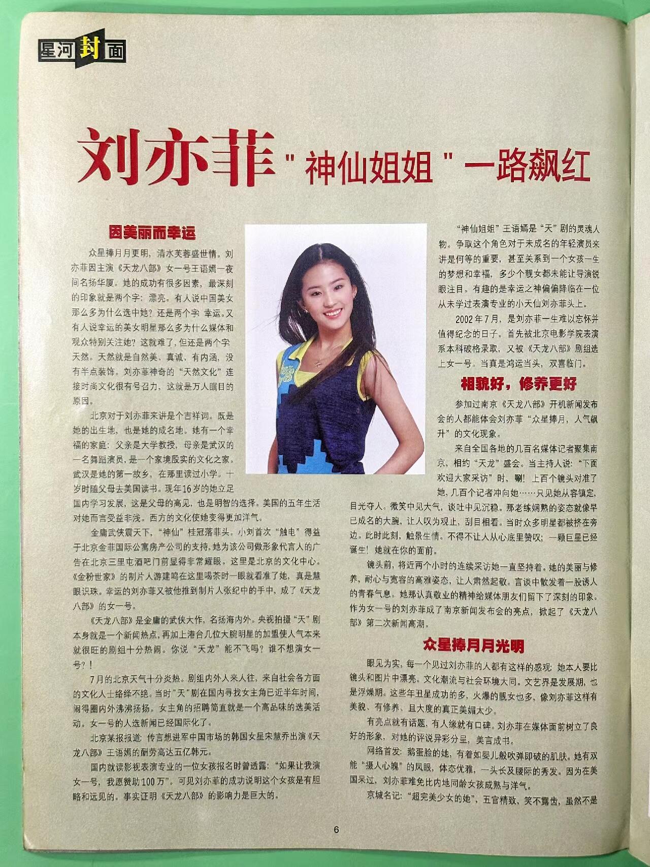 “刘亦菲 一路飙红”刘亦菲2003星河影视杂志📓
