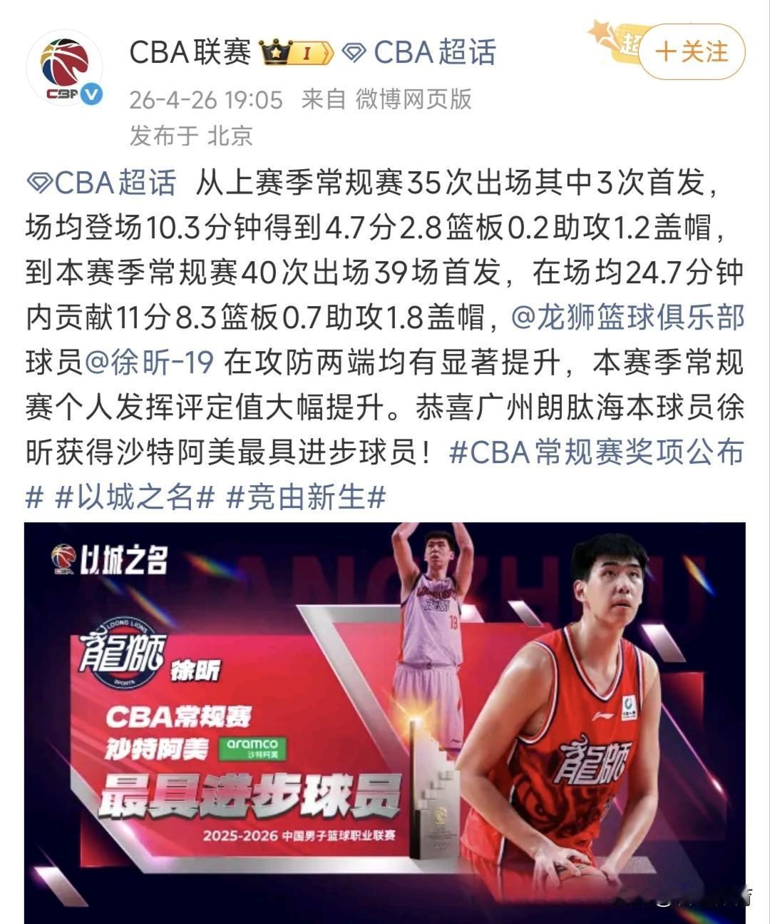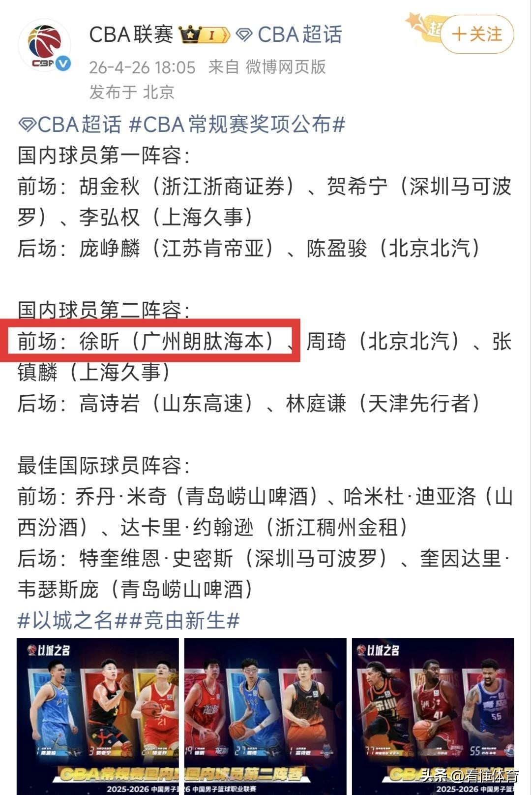 CBA常规赛奖项公布!徐昕获最佳二阵、最具进步球员奖,球迷:杜锋怎么看?
