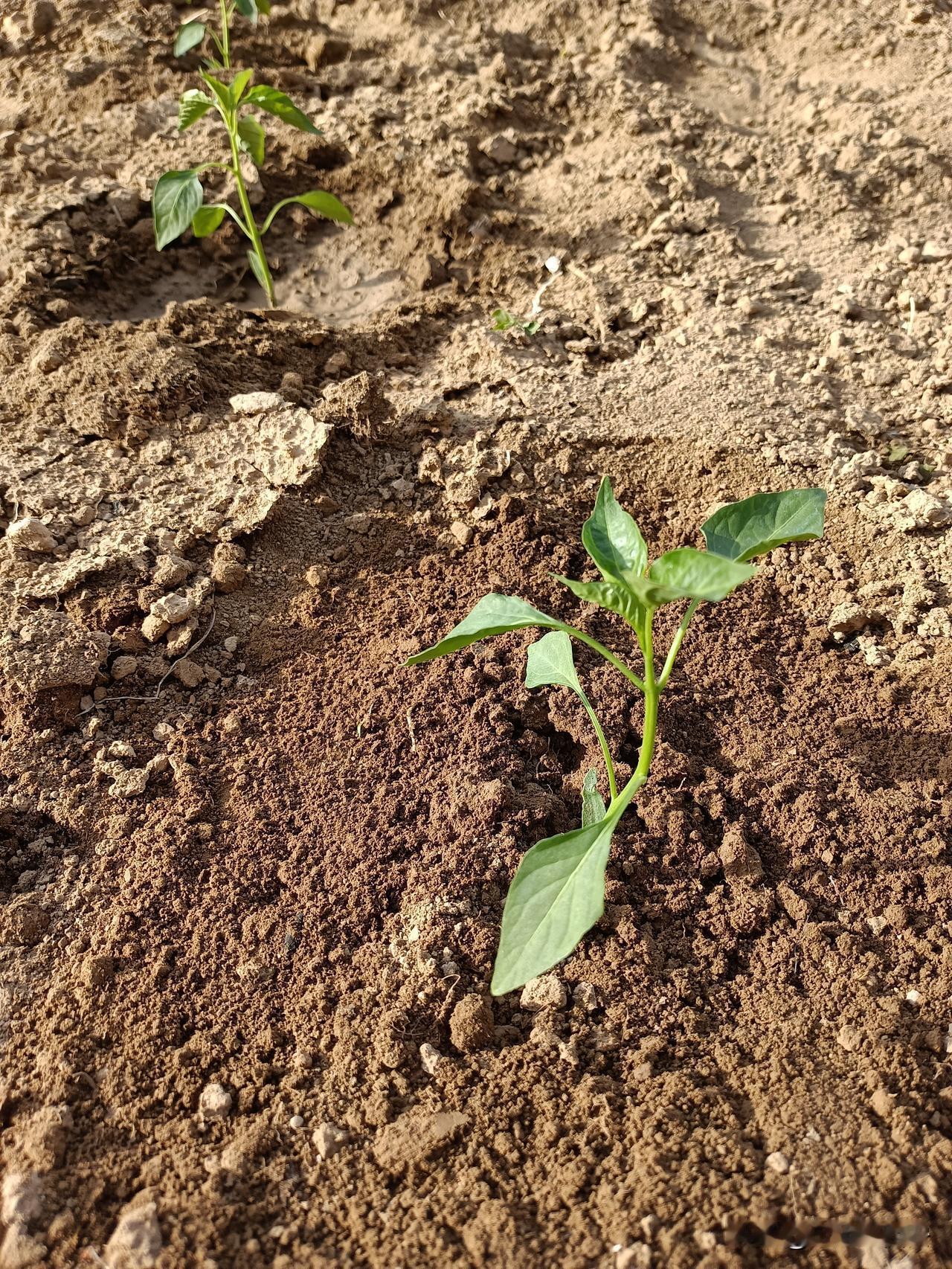 昨天天快黑时栽的辣苗,经过一夜洗礼,今天中午也没见低头,而是非常接地气的挺立在原窝窝里。