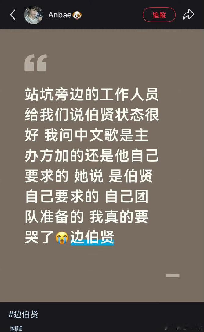 边伯贤WIEA压轴主办说的伯贤准备的中文歌 是他自己要求的 自己团队准备的 还一直夸伯贤 昨天还彩排到凌晨
