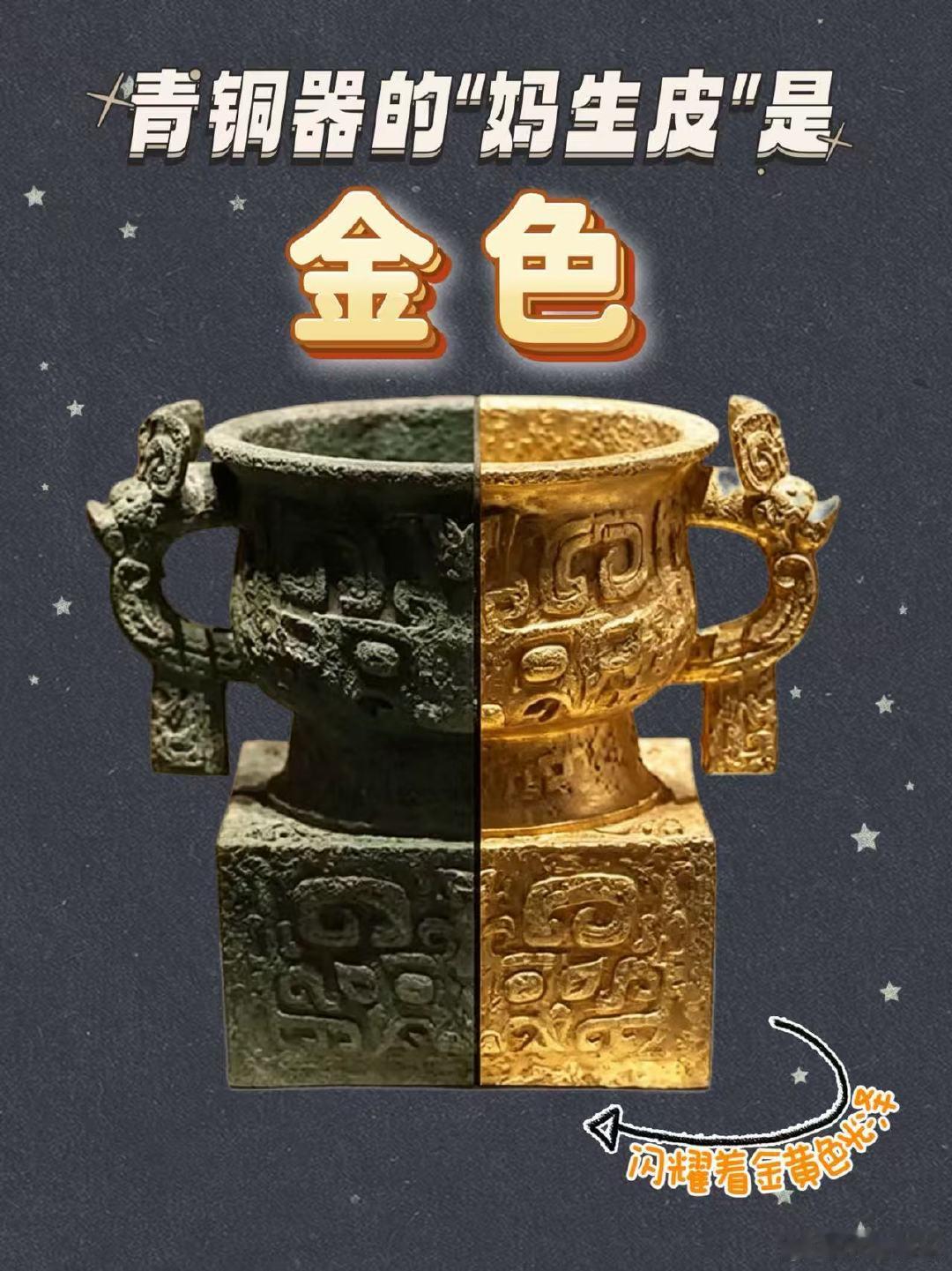 青铜器为什么叫吉金 青铜器出厂皮肤是金色刚铸好的青铜器华贵耀眼,金黄与玫瑰金色调尽显大气,吉金之名名副其实。青绿外观是岁月与化学反应共同造就的模样。