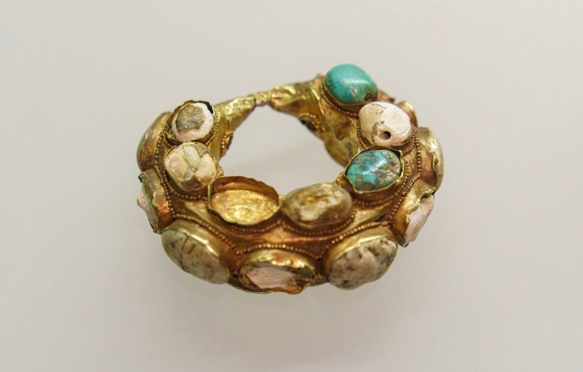 图②北魏玻璃珠项链图③北魏嵌松石金耳环