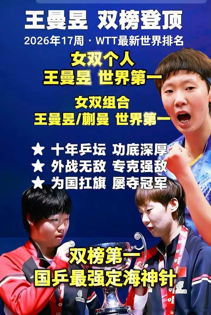 比起捧着和世乒赛相关的唯一一个波普杯吹的还有女双“个人”世界第一的,怎么双打还是