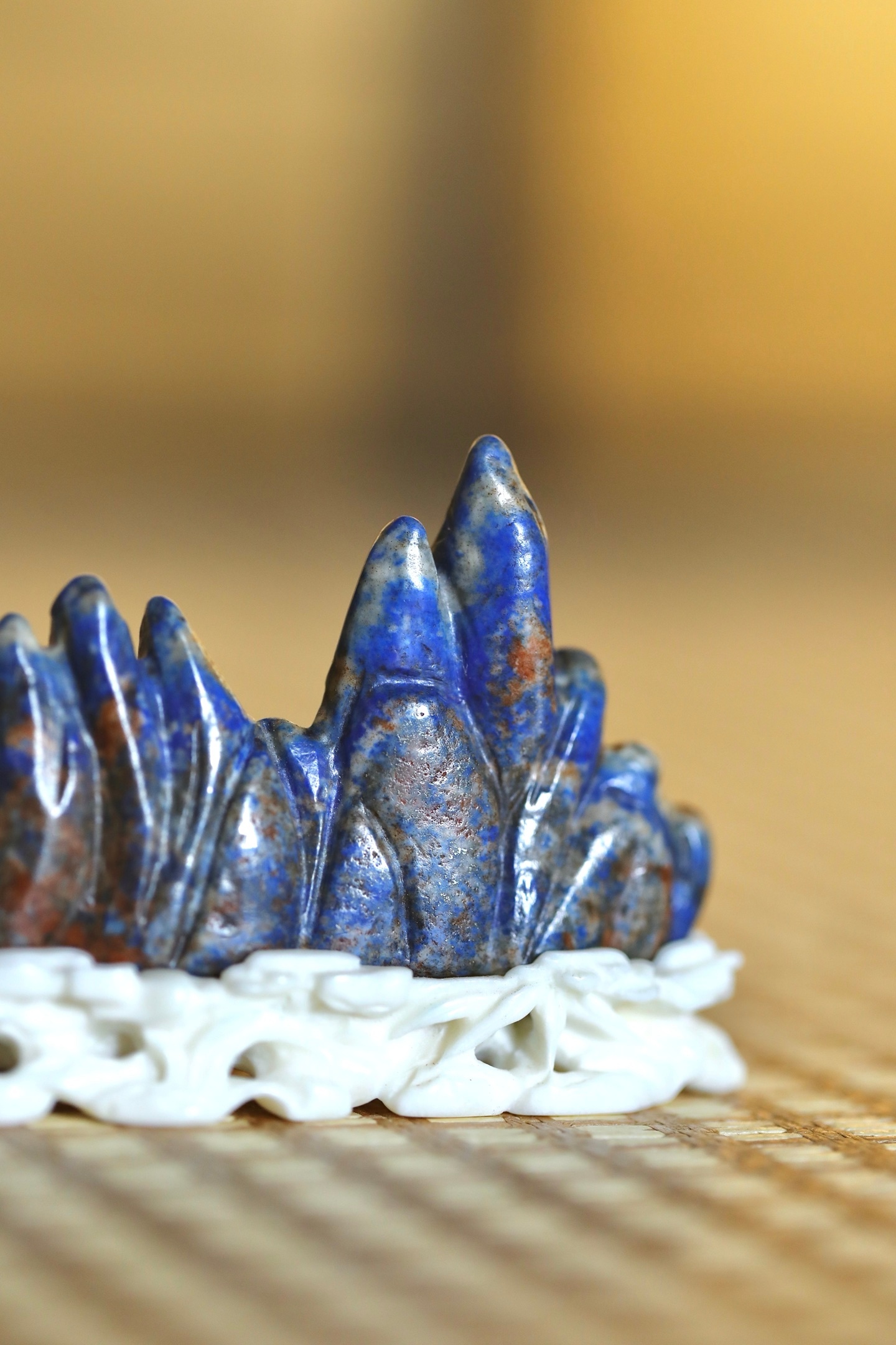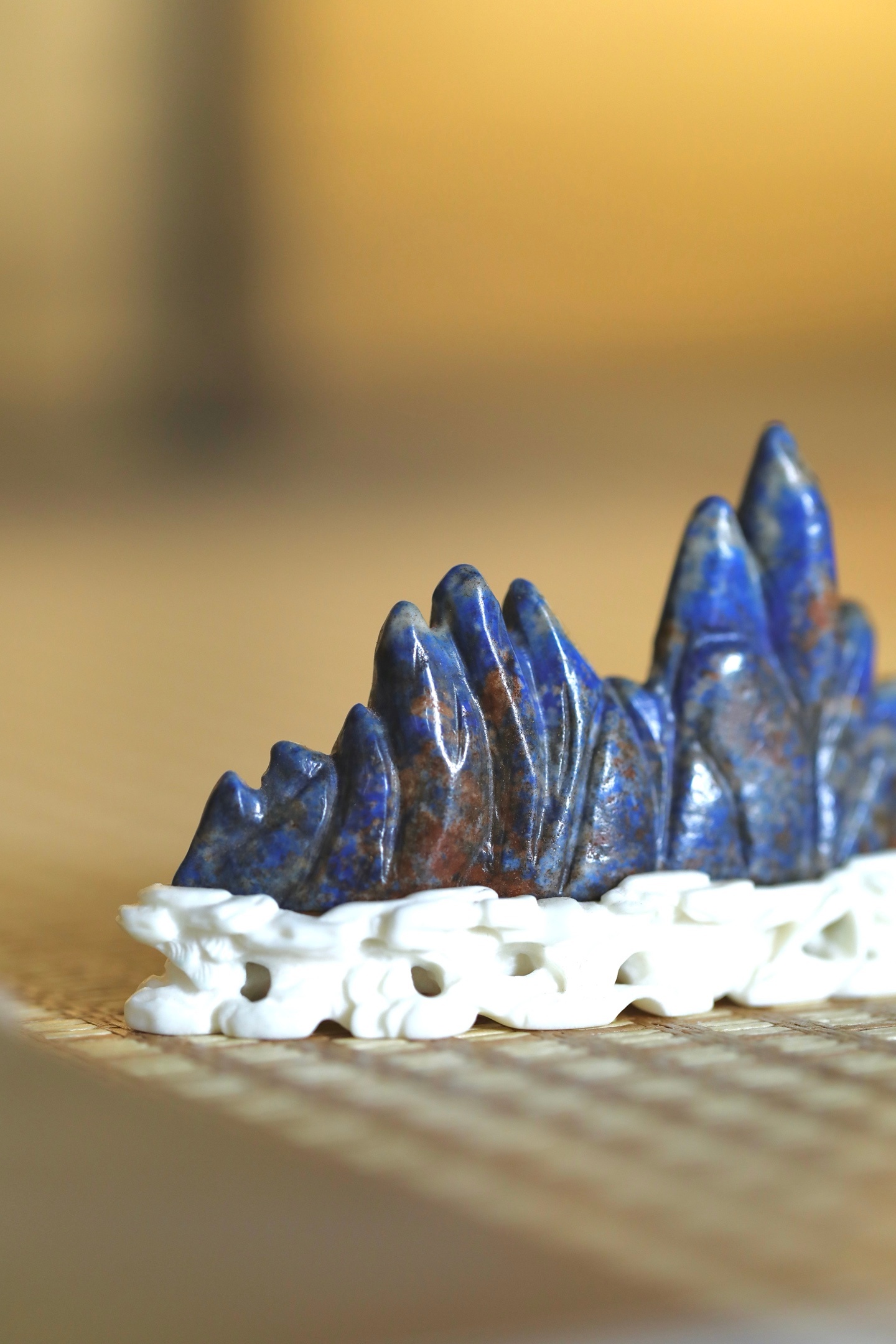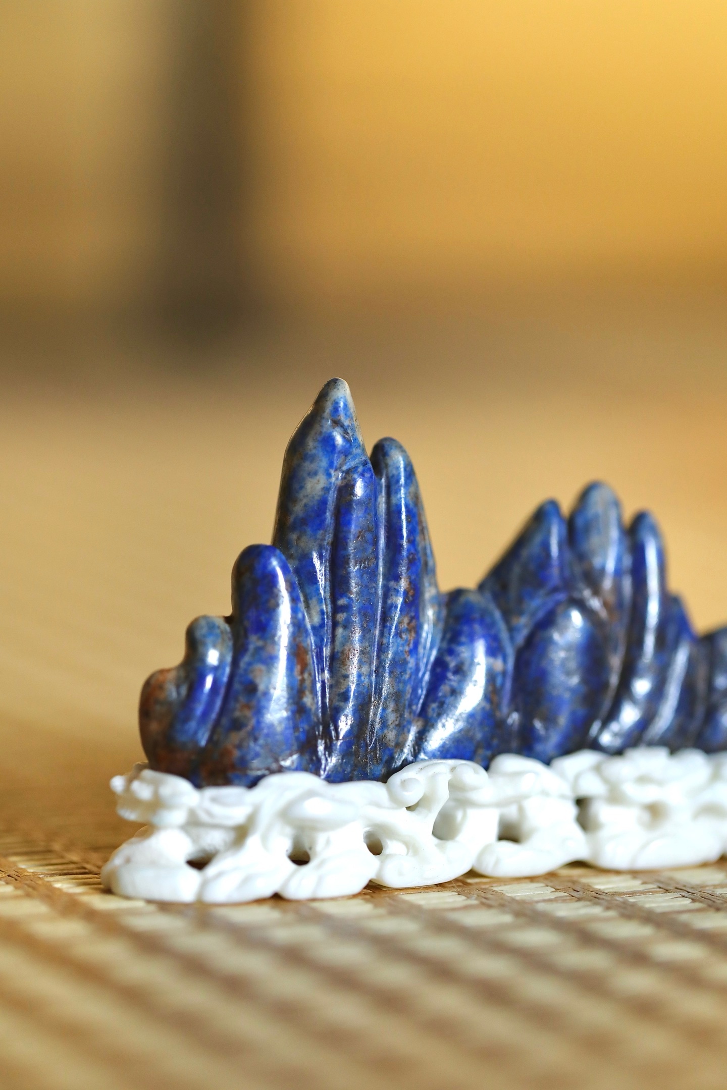 青金石 | 笔搁匠人循石之天然起伏,雕主峰耸峙、侧岭逶迤,谷壑隐现于刀痕之间,将