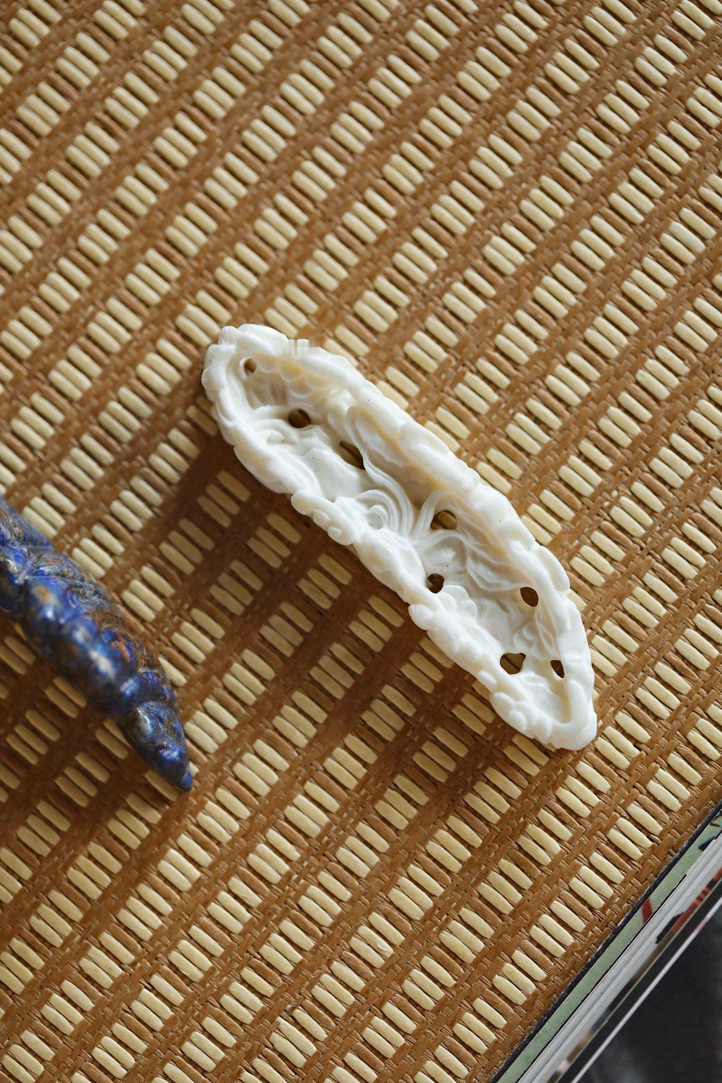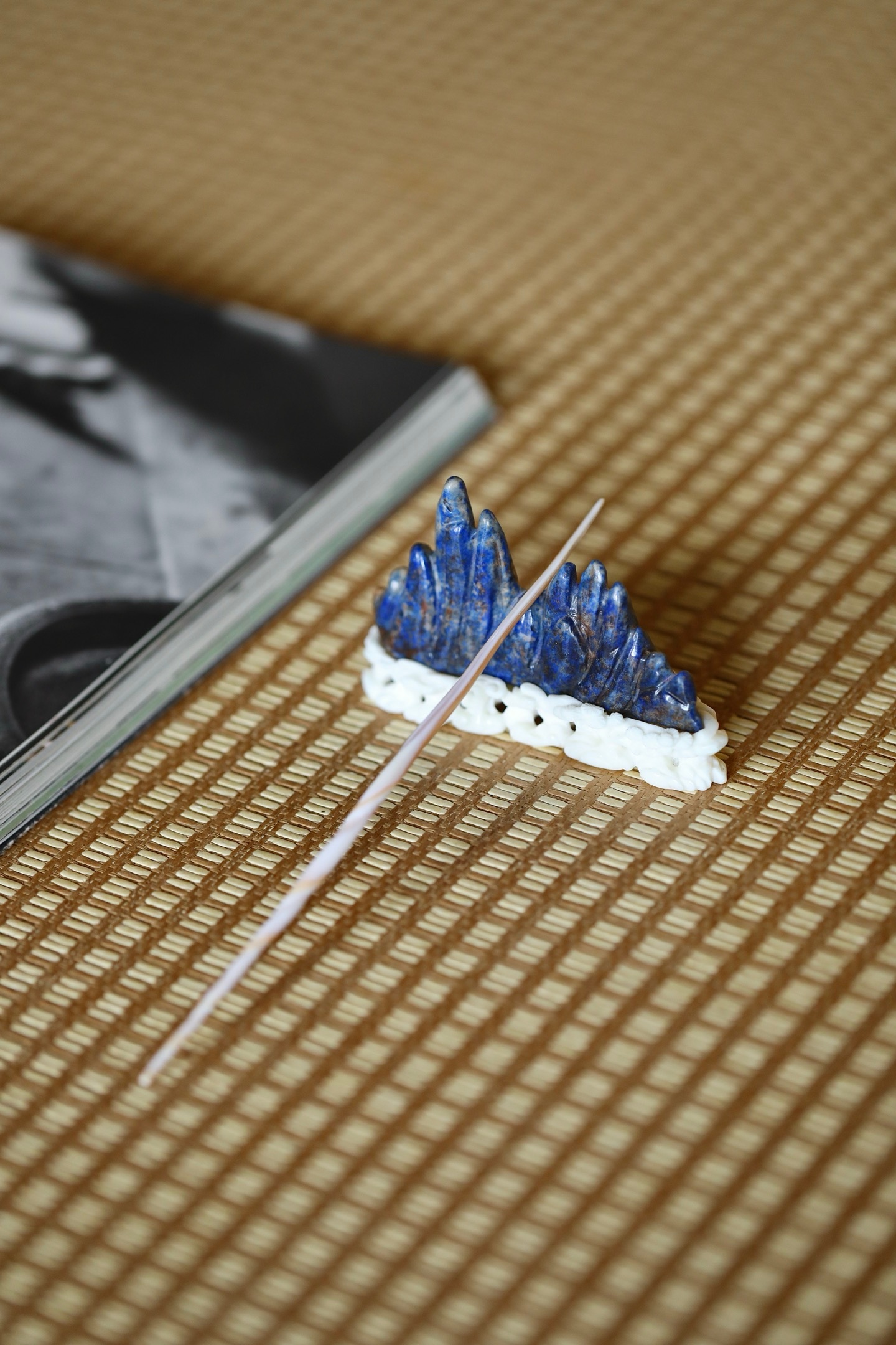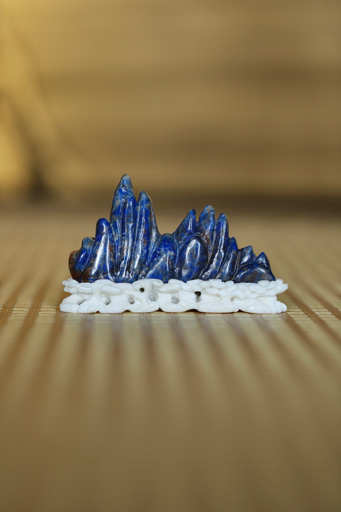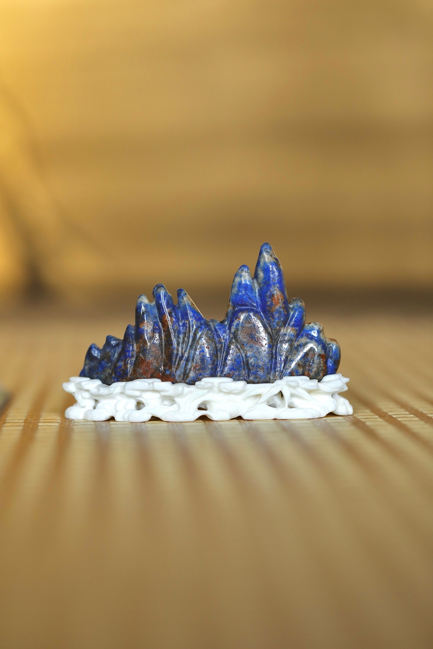 青金石 | 笔搁匠人循石之天然起伏,雕主峰耸峙、侧岭逶迤,谷壑隐现于刀痕之间,将