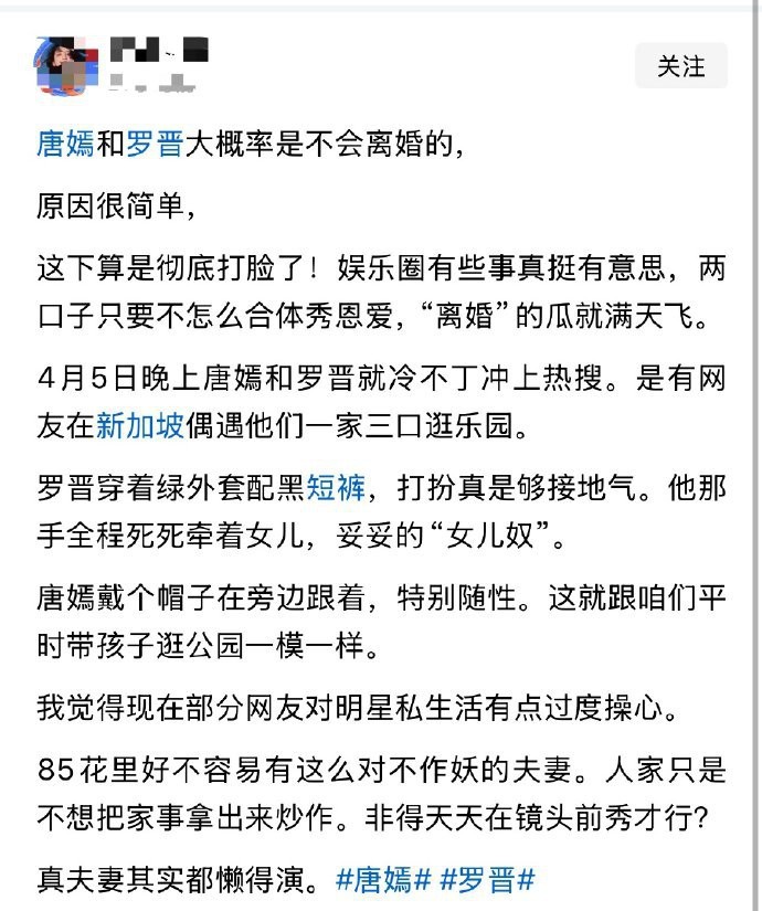 唐嫣和罗晋大概率是不会离婚的, 原因很简单