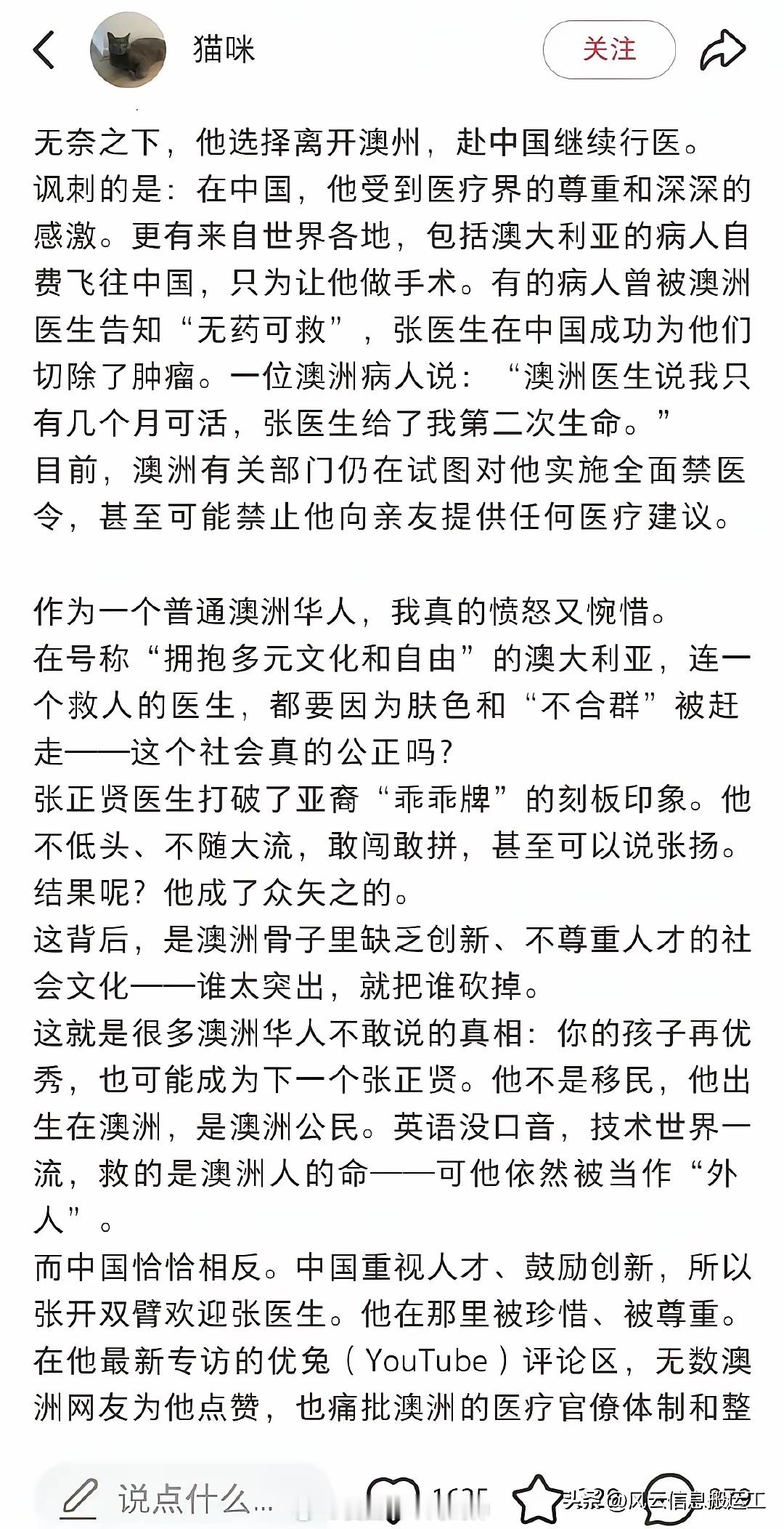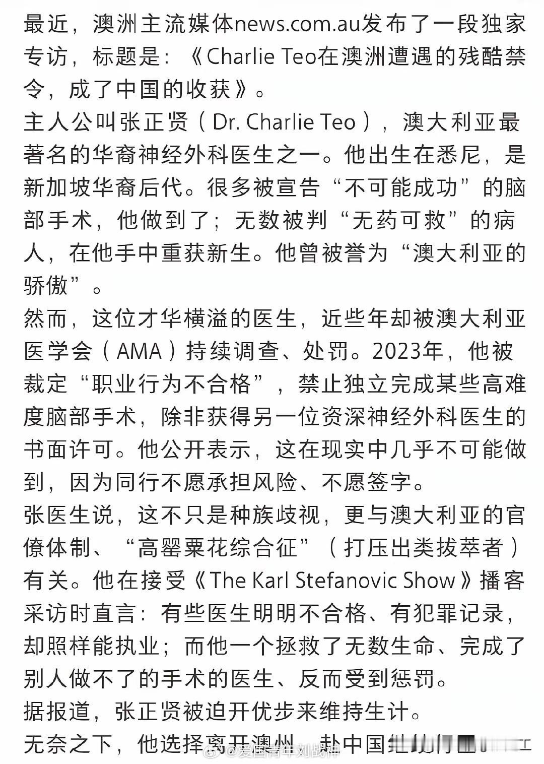 澳洲的华裔医生,被澳洲打压赶走,不得不到中国工作,澳洲人飞中国找他做手术。