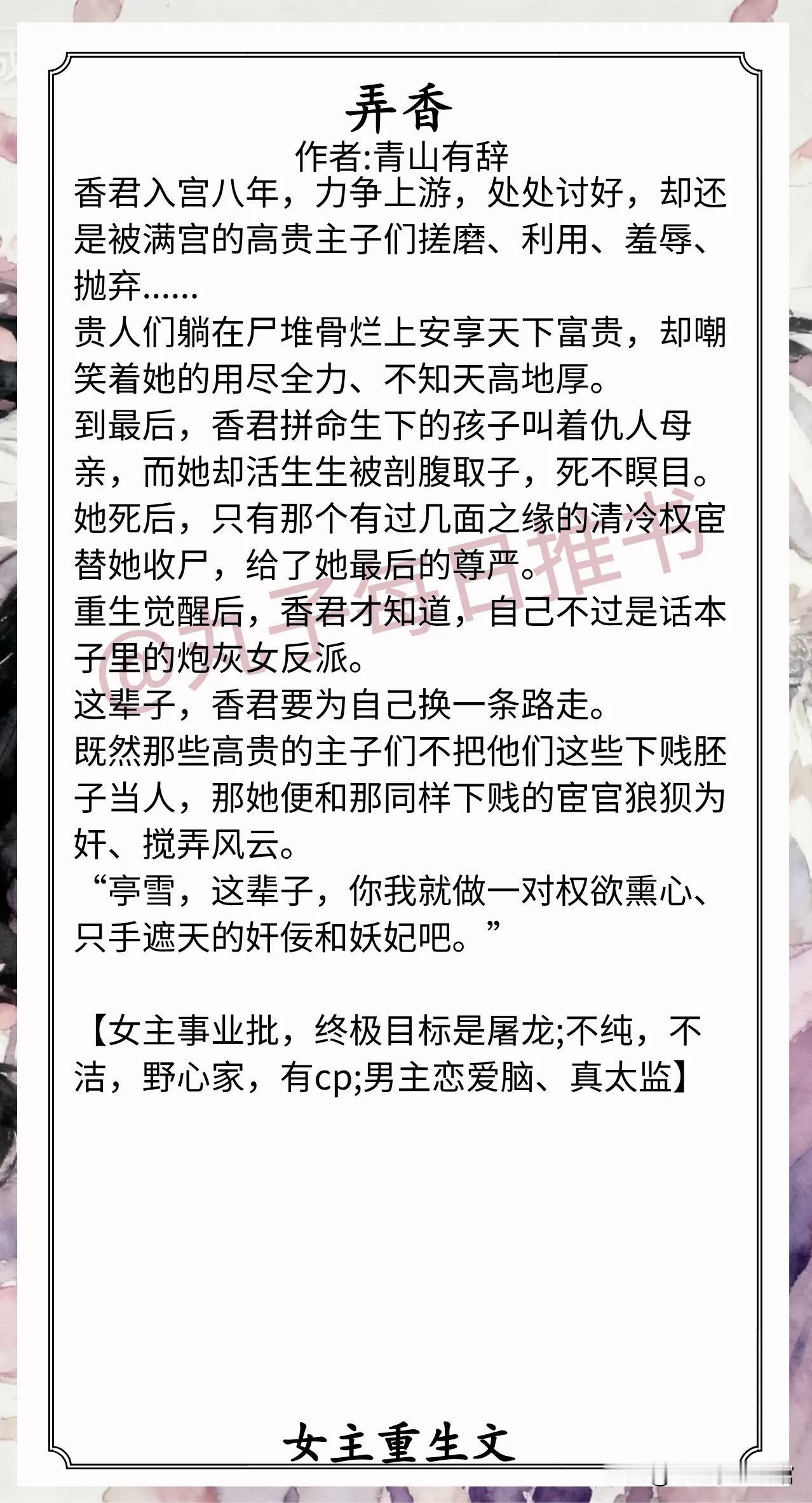 4.《弄香》作者:青山有辞(狠辣野心家vs恋爱脑太监,重生,复仇,一心屠龙)