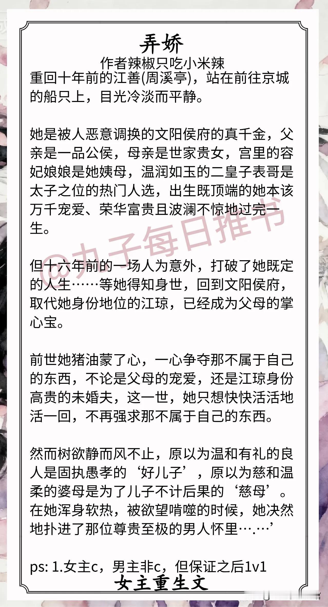 3.《弄娇》作者:辣椒只吃小米辣(成长型真千金vs成熟爹系帝王,重生,打脸,老房子着火)