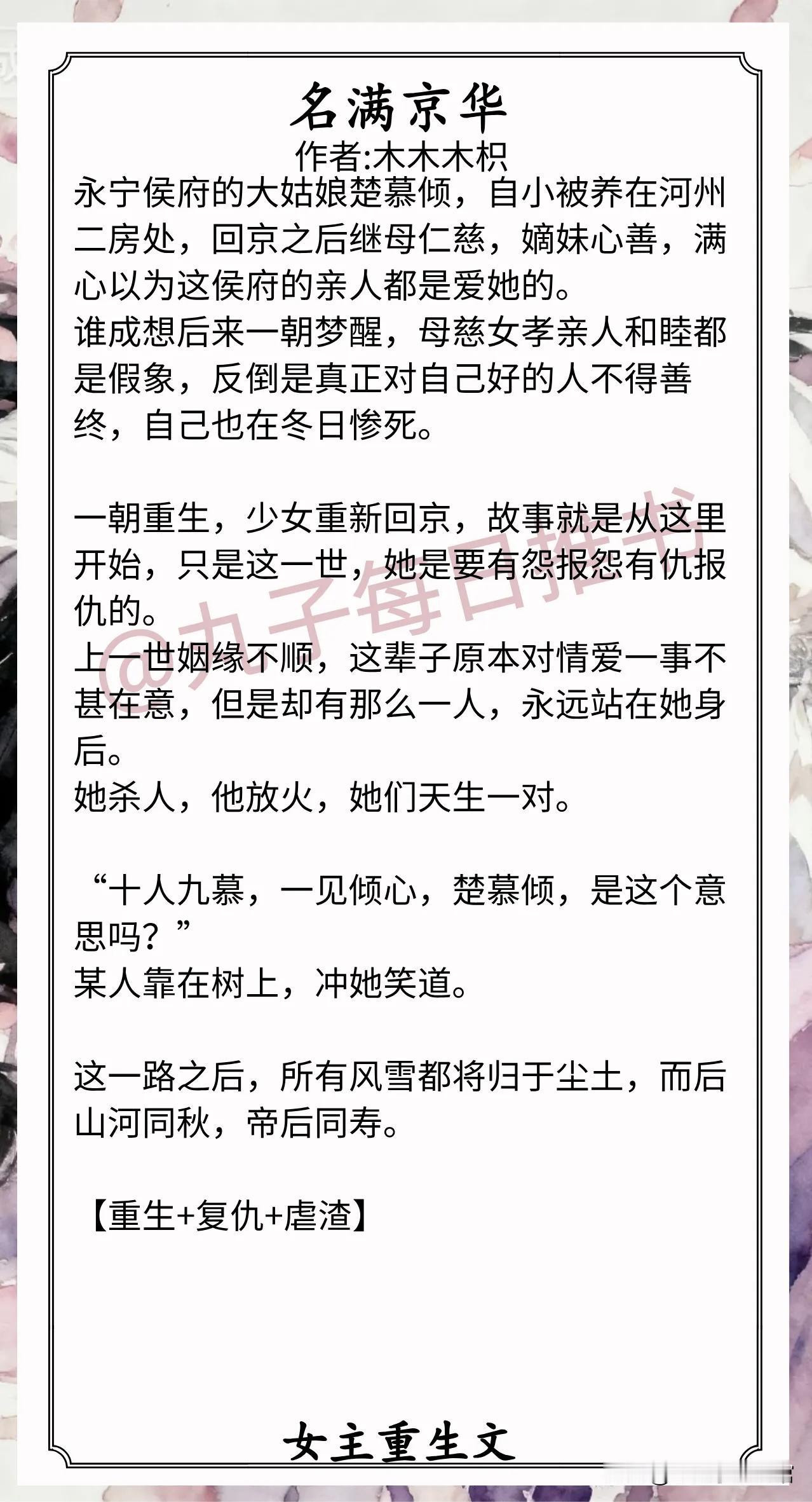 2.《名满京华》作者:木木木枳(聪慧侯府贵女vs张扬小公爷,重生,复仇虐渣,强强联合)