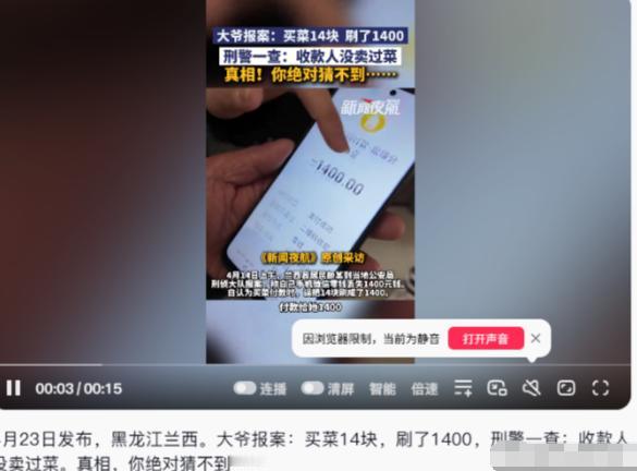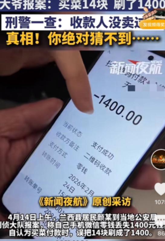 有赌的成分!4月23日,黑龙江兰西,一大爷报案称,自己买菜花了14元,误扫了1400元。民警通过支付记录找到收款人,可收款人却说,自己压根就没卖过菜。民警通过查看店里的监控,真相也终于浮出水面。网友:看着不太老实的样子!