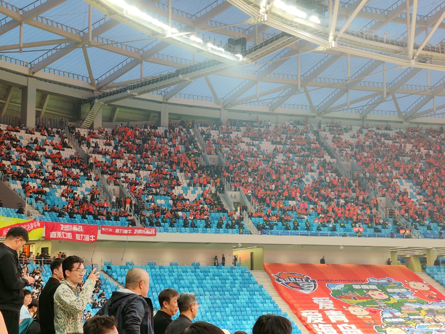 大批鲁蜜提前退场了,海牛球迷们满场的高喊:青岛才是山东代表,SX,服不服,太丢人了青岛海牛vs山东泰山 青岛·青岛青春足球场
