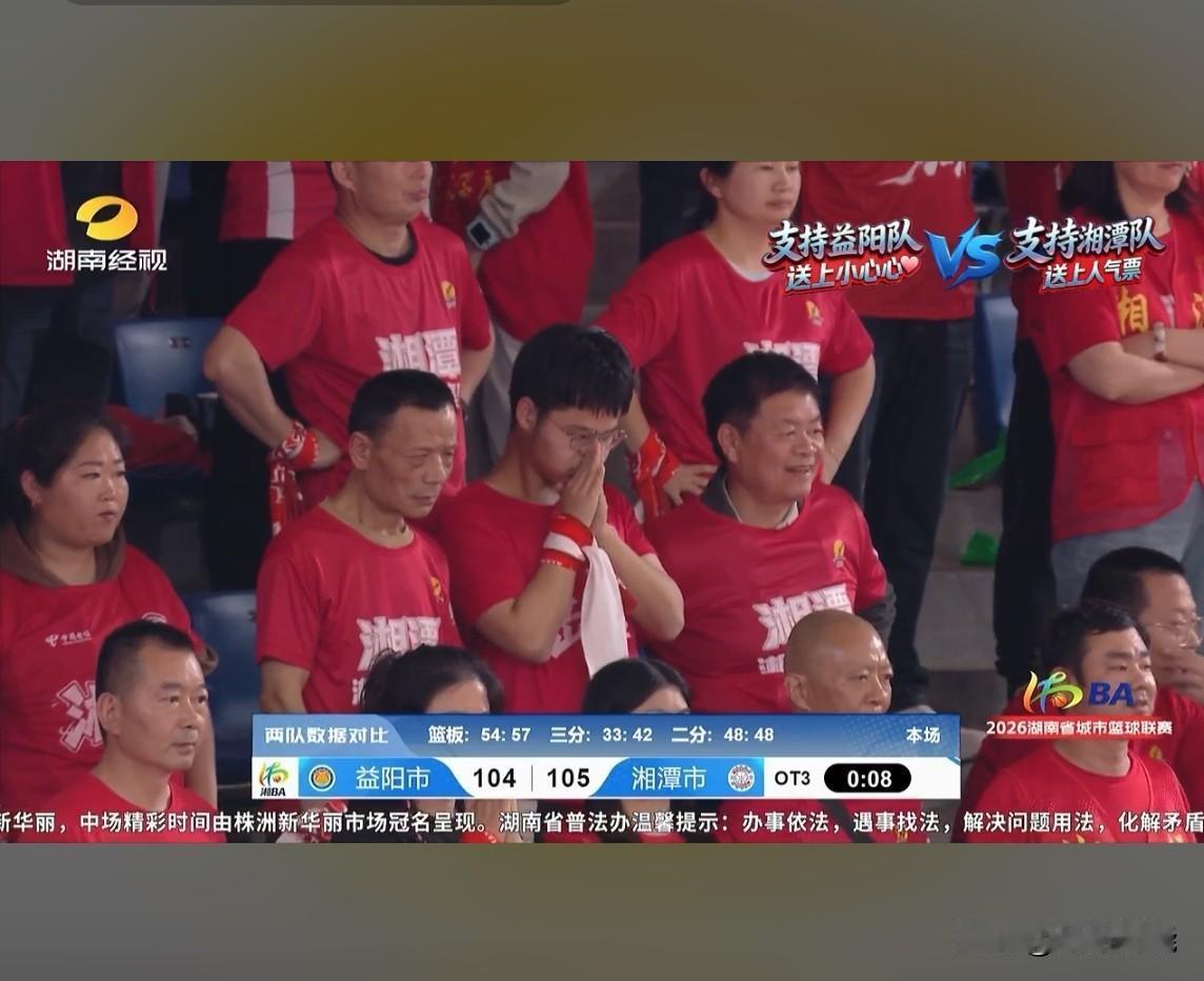 湘潭队赢了1分。但你看他们庆祝的样子,像是赢了总冠军吗?不像。更像是终于活下来了。而益阳队呢?输了吗?一个三加时的比赛,打到全场最高分106比105,哪个输了?