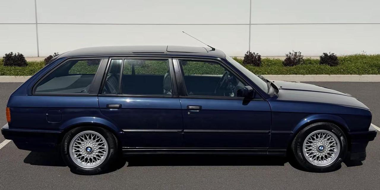 BMW 320i Touring.这台 1990 款宝马320i Touring 是一台很典型、也很有味道的欧洲市场版本旅行车。车身采用 蓝色车漆,内饰则是 黑色真皮,整车气质克制而干净,没有夸张的修饰,却把那个年代宝马最迷人的部分——机械感、比例感和驾驶感——保留得相当完整。动力部分搭载一台 2.0 升直列六缸发动机,匹配 五速手动变速箱。对于今天的标准来说,它的数据并不激进,但正因为这套动力组合足够线性、足够纯粹,才让它在三十多年后依旧显得耐看。配置方面,这台车配有 15 英寸篮网式合金轮圈、四轮盘式刹车、欧洲规格“微笑”大灯、手动天窗、尾部扰流板、Kenwood CD 音响以及暖风系统。如果按更符合国内读者习惯的说法,15 英寸轮圈约等于 38.1 厘米,在当年的宝马旅行车上,这样的尺寸既协调,又保留了浓郁的原厂味道。真正让人着迷的,不只是这台车本身,而是它所处的时代。90 年代初的宝马,还没有今天这样过度数字化,设计语言也没有被市场潮流冲得太满。那是一个讲究“开起来如何”的年代,旅行车不是身份标签,而是生活方式;直六发动机也不是参数表里的数字游戏,而是每一次起步、换挡、拉高转速时都能让人上头的声音与质感。320i Touring 这种车,放到今天看,像是一种被时间筛过的审美:不喧哗,但很有分量;不张扬,却足够让懂车的人停下来多看两眼。宝马旅行车 经典情怀老车 汽车文化 汽车知识