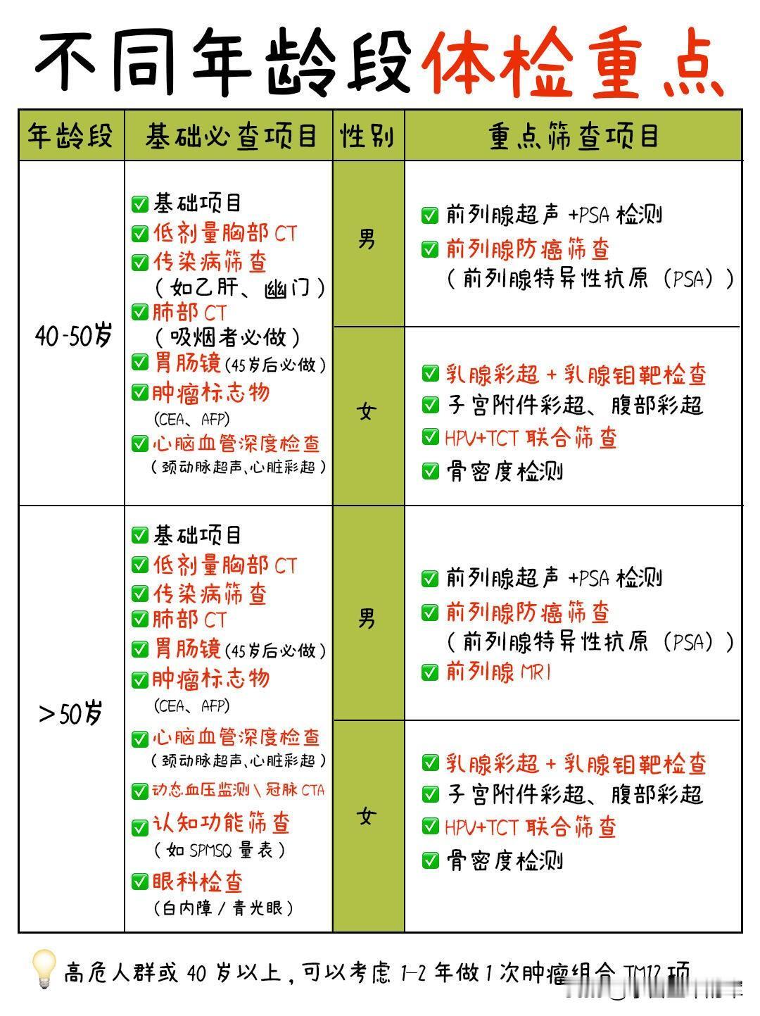 以前总觉得体检就是走个过场,直到朋友查出问题才明白,不同年龄、不同性别,要重点筛查的项目完全不一样。