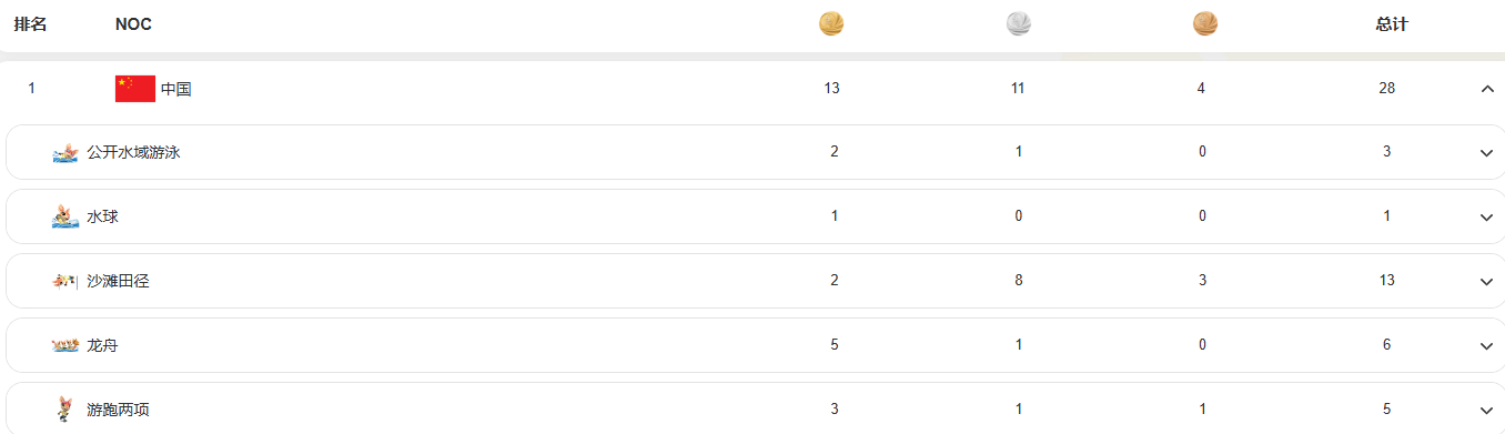 目前中国队13金11银4铜,在金牌榜和奖牌榜上遥遥领先#亚沙会龙舟6金中国队获5金##三亚亚沙会#