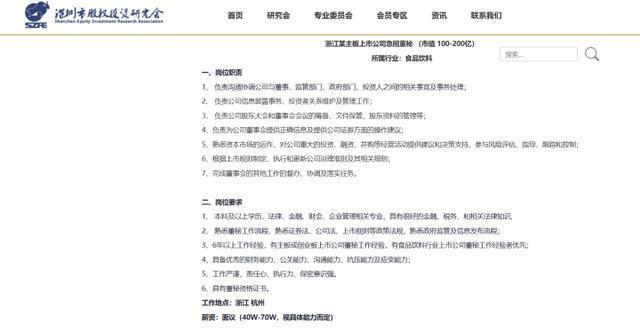 “浙江某主板上市公司急招董秘(市值100-200亿),工作地点杭州,薪酬面议(40W-70W,视具体能力而定)。”这是浙江一家食品饮料上市公司紧急挂出的董秘招聘广告。