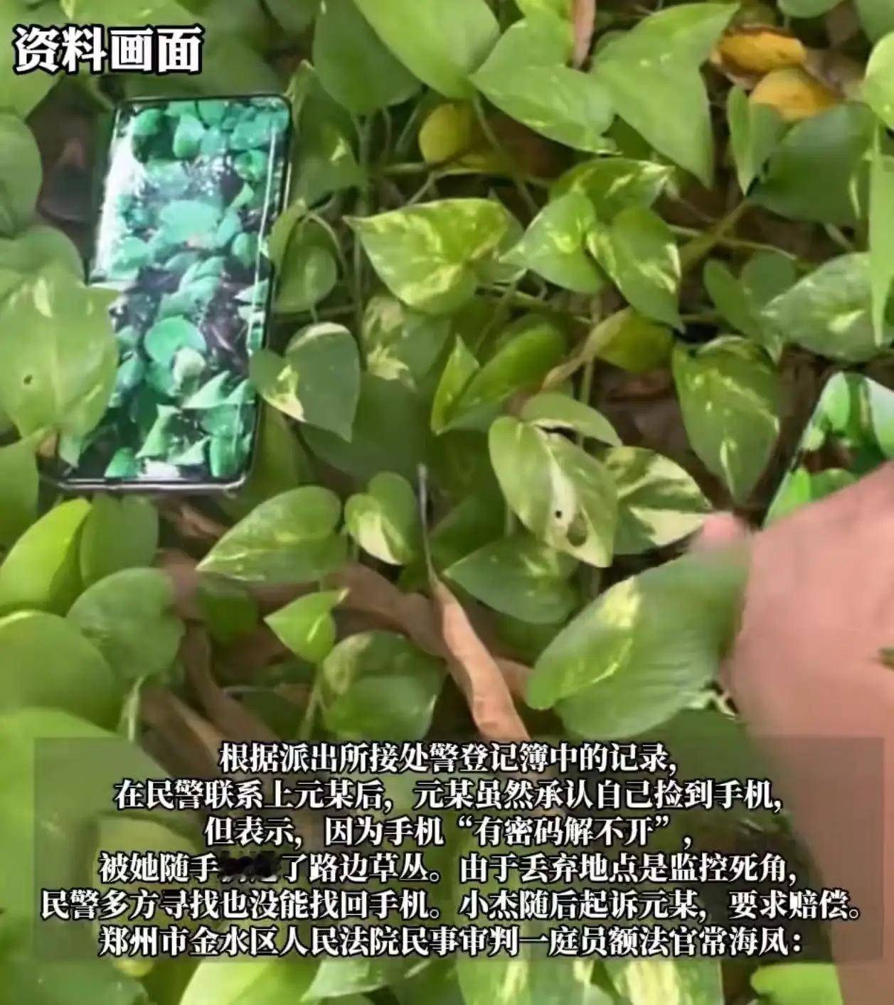 河南郑州,女子捡到手机解不开密码丢掉,被判赔6000元!网友:以前是人不能扶,现在是手机也不能随便捡了?