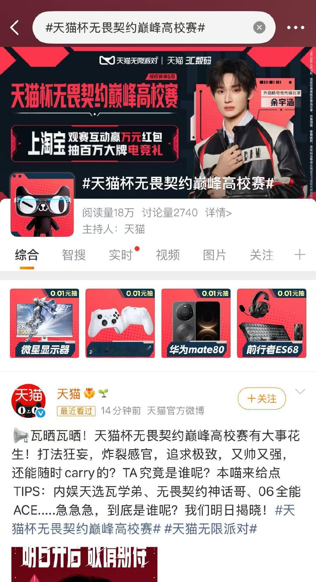 重磅官宣!余宇涵无畏契约巅峰高校赛 来啦!余宇涵官宣无畏契约巅峰高校赛 全能爱豆解锁电竞新身份,舞台王者转战电竞赛场,颜值与实力双在线,速速蹲守,一起为电竞小鱼打call,见证赛场高光时刻!