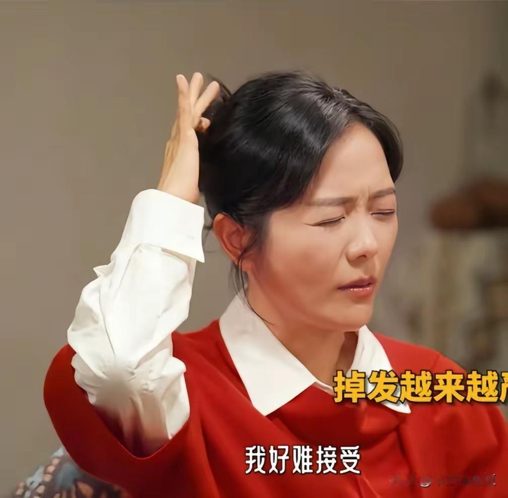 就是又焦虑,但是又改变不了现状,就持续的焦虑。她在采访中说到自己的头发有一块没有了,当时就感觉让人接受不了。自己就买了很多假发片。
