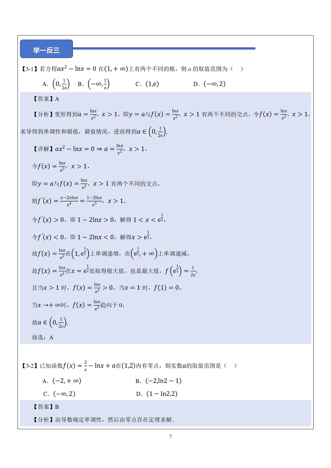 高中数学导数中零点问题
