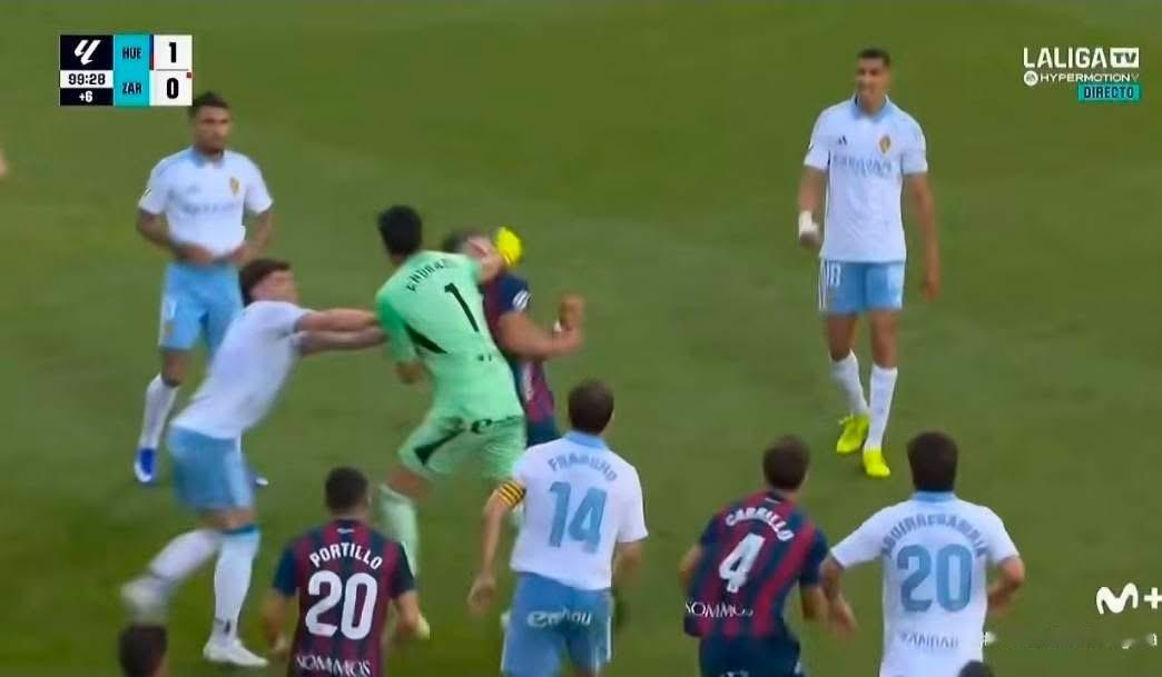 西乙嘅薩拉戈薩作客韋斯卡落後0-1,戰至補時8分鐘,薩拉戈薩嘅阿根廷龍門安查達(Esteban Andrada)先係向球證激烈抗議,繼而推跌對方嘅普列度(Jorge Pulido)。領紅牌後隨即失控,衝向普列度且出拳打中佢面部,引發兩隊球員群毆。事後除咗安查達,雙方都再各有1名球員被逐。