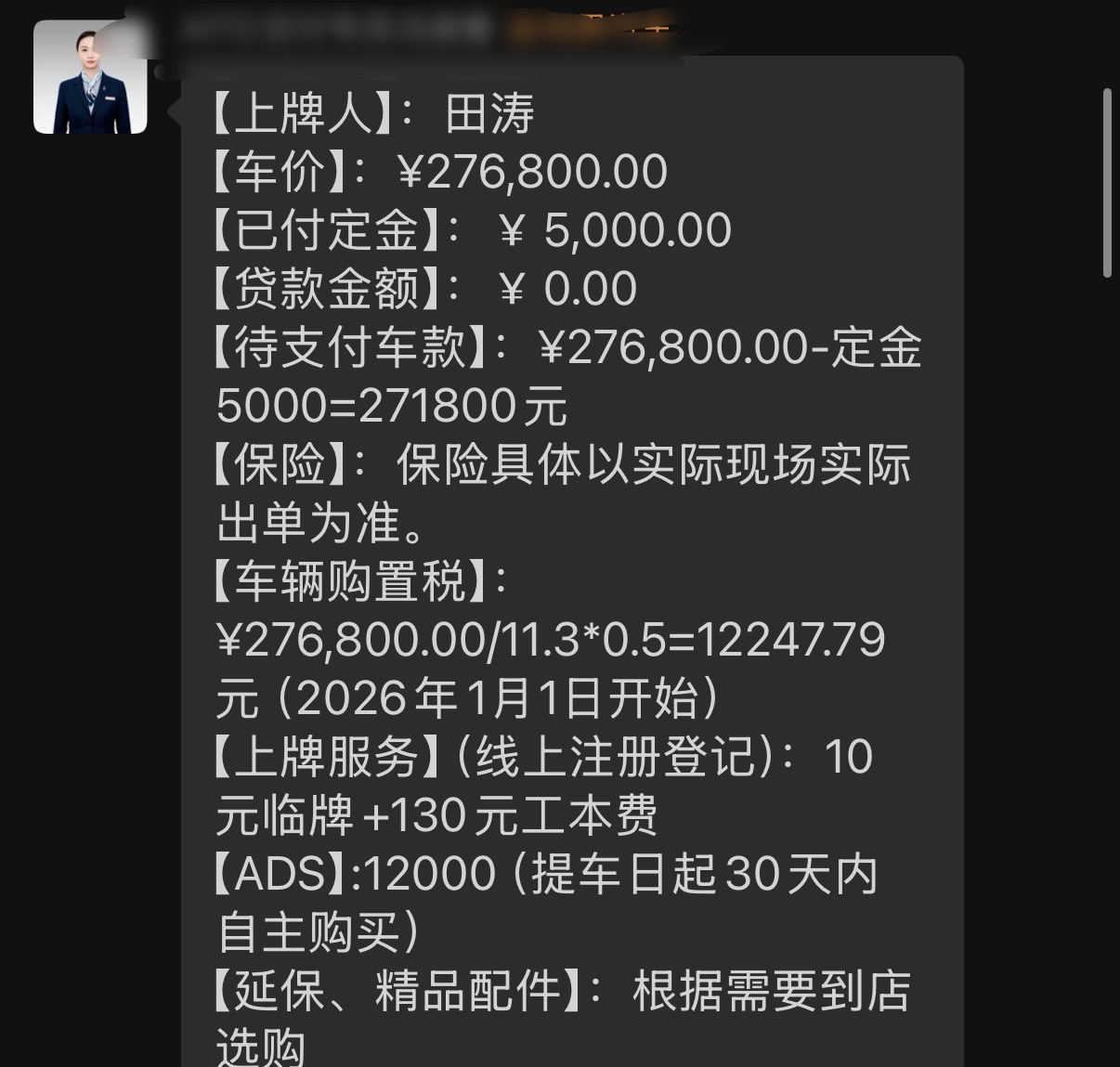 有一个10000元老车主增购,宁波区补6000元。实际总价:292852.79元。