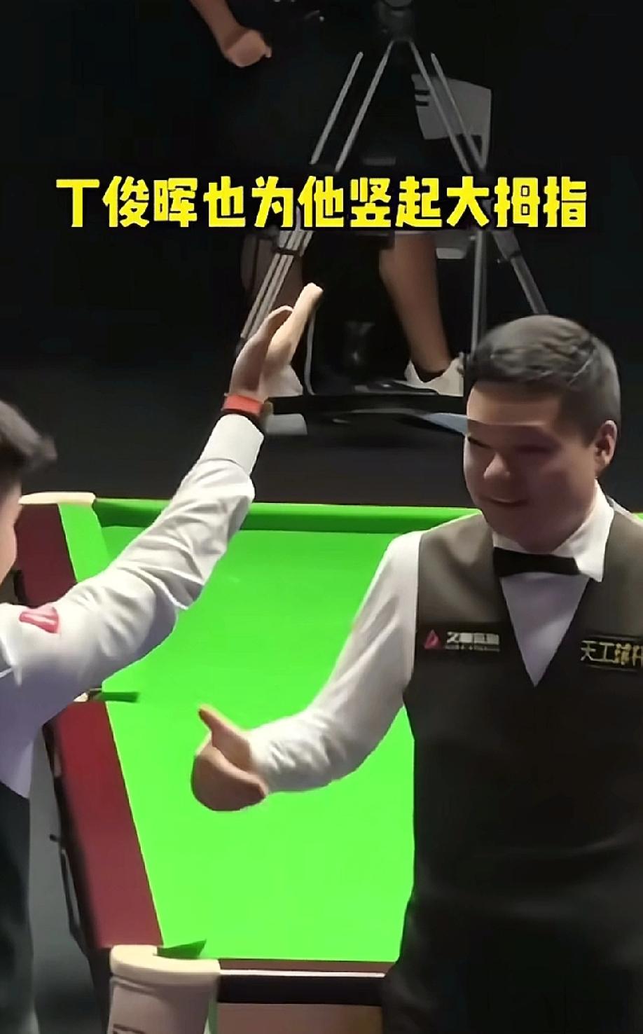 丁俊晖也对他竖起了大拇指,俩人都很善良,为对方考虑,这幅画面真的太难得了。