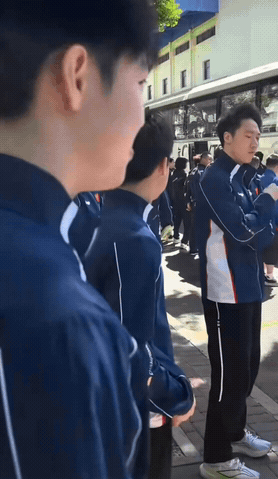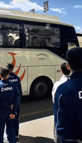 队友们为出征伦敦团体世乒赛的国乒送行,前辈马龙一脸严肃,挥手送别。小将黄友政在送别之列中嘻嘻,他没有压力,也没有感受到比赛形势的严峻。